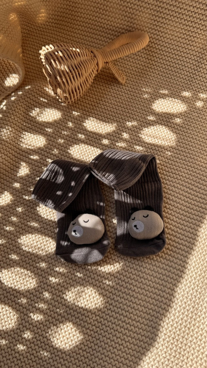 Antrasit Peluş 3d Oyuncaklı Eğlenceli Bebek Çorabı