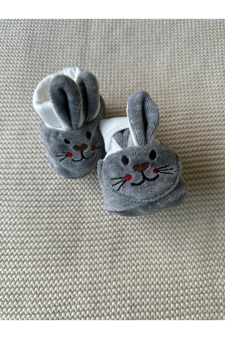 Antrasit Tavşanlı Kaymaz Tabanlı Kadife Bebek Patiği