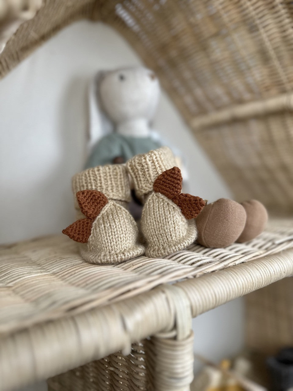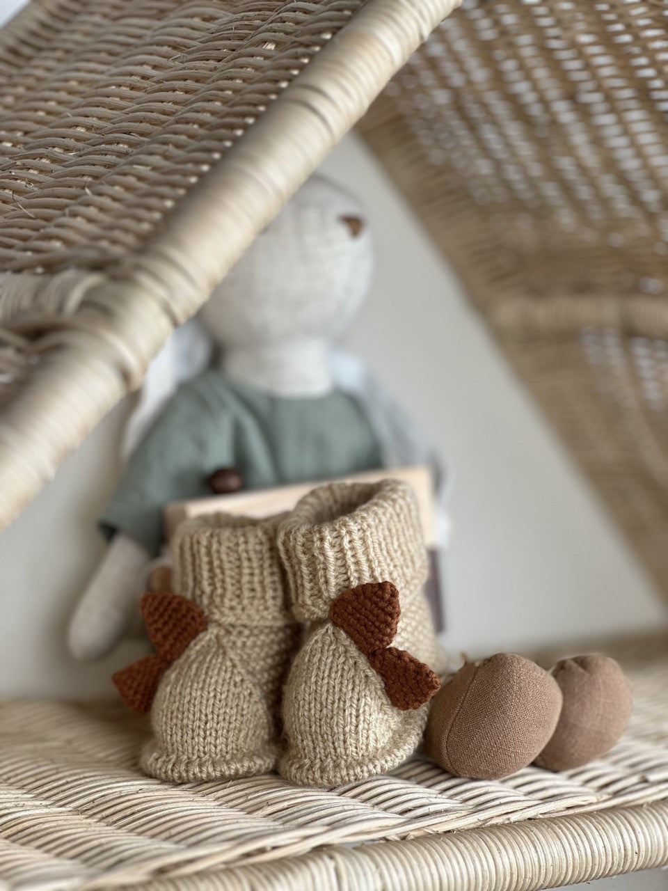 Bej Handmade Dinazor Figürlü Bebek Patik
