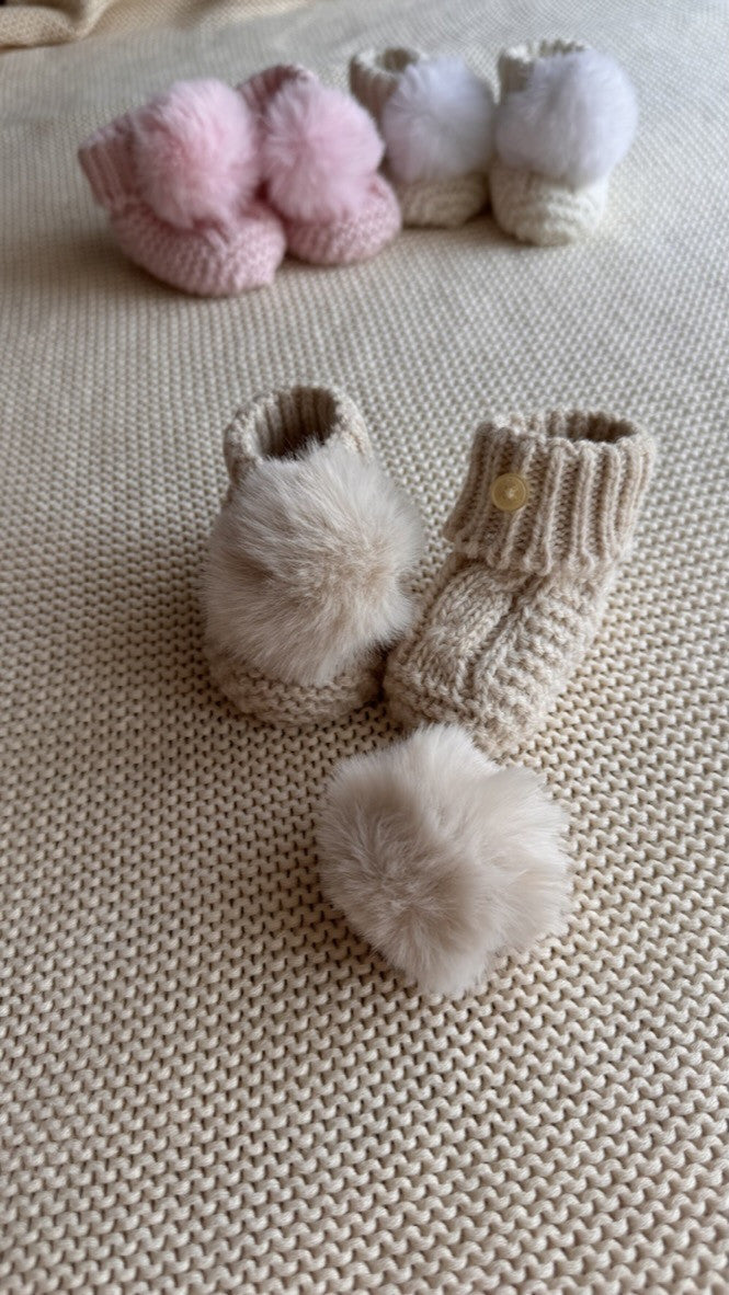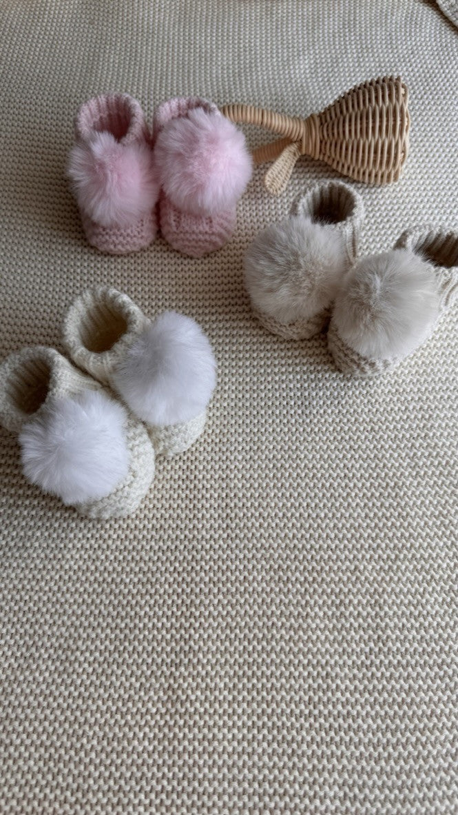 Tüylü Ponponlu Saç Örgü Patikler, bebeklerinizin ayaklarını hem sıcak hem de şık tutmak için tasarlanmıştır.