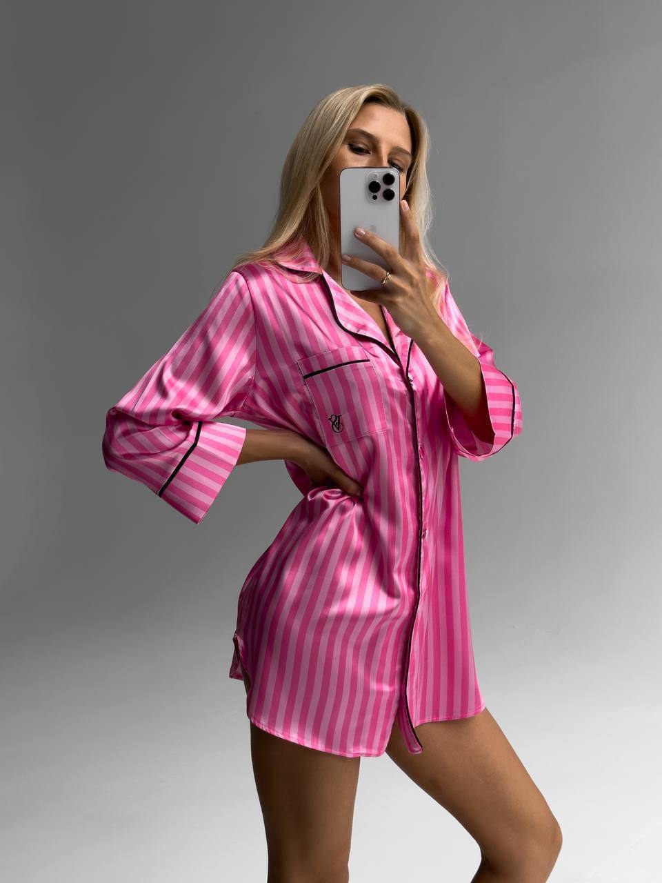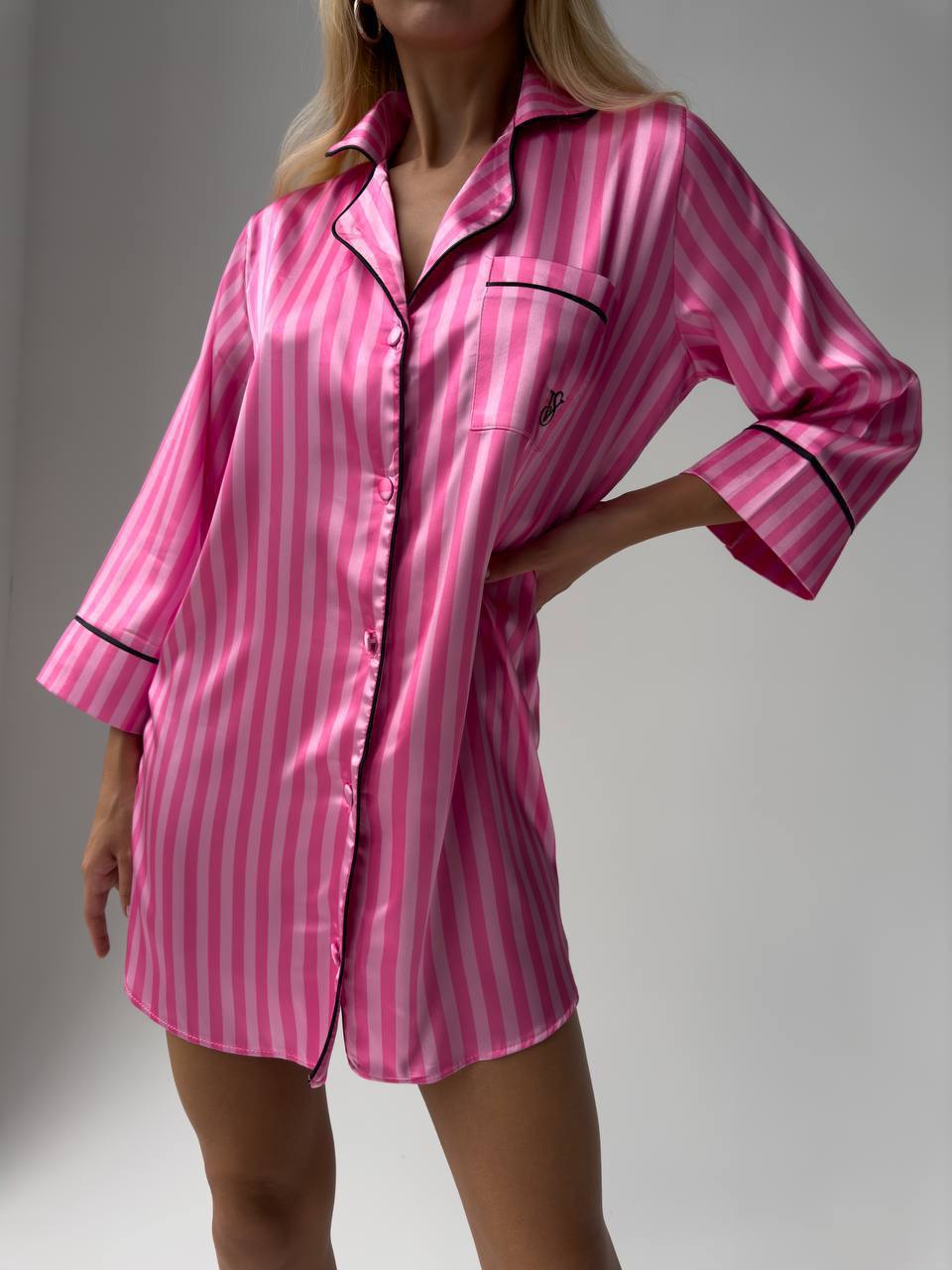 Fuşya Çizgili Saten VS Kadın Gecelik
