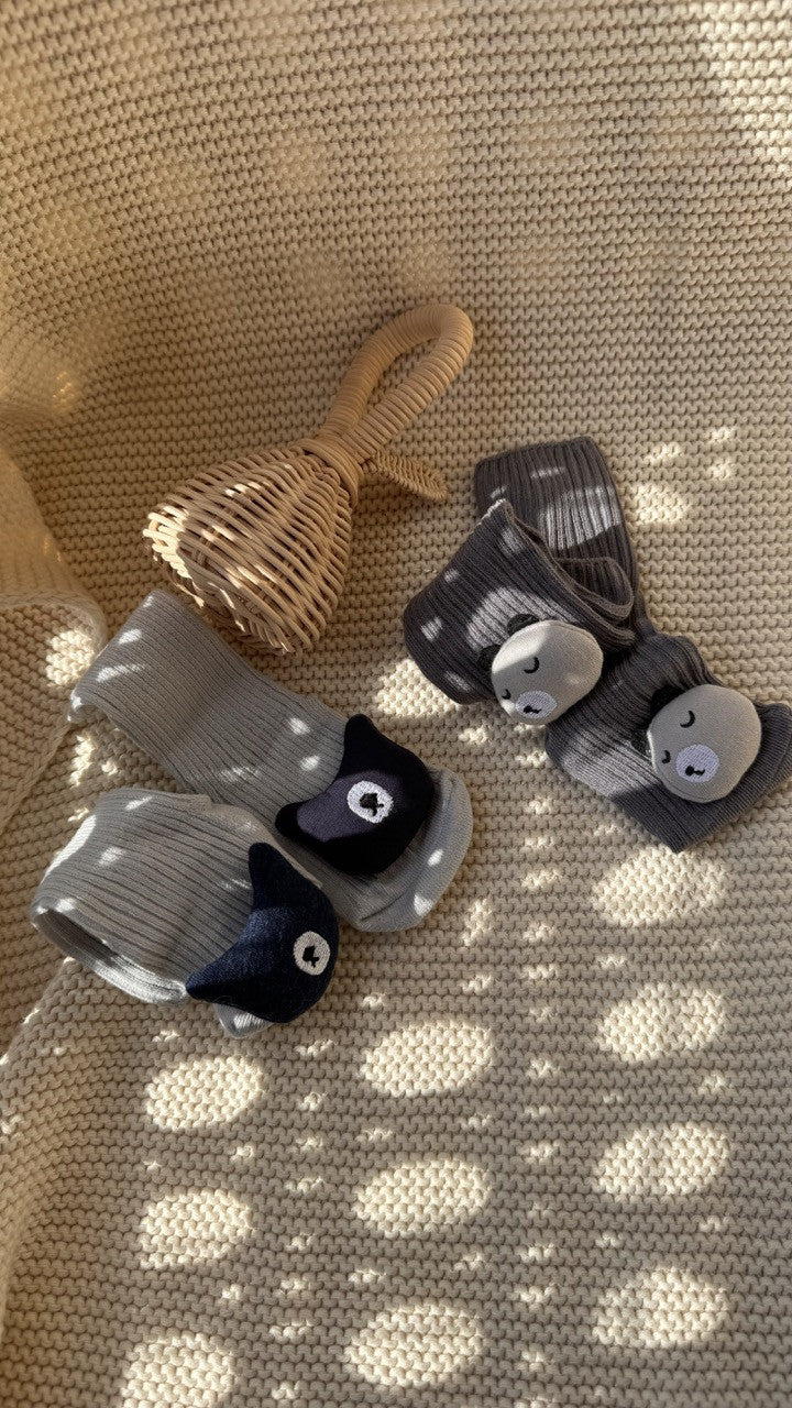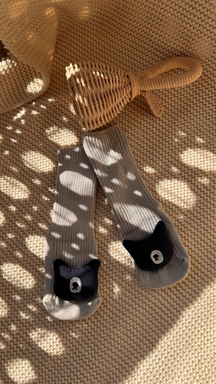 Gri Peluş 3d Oyuncaklı Eğlenceli Bebek Çorabı