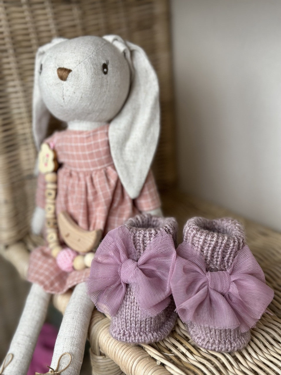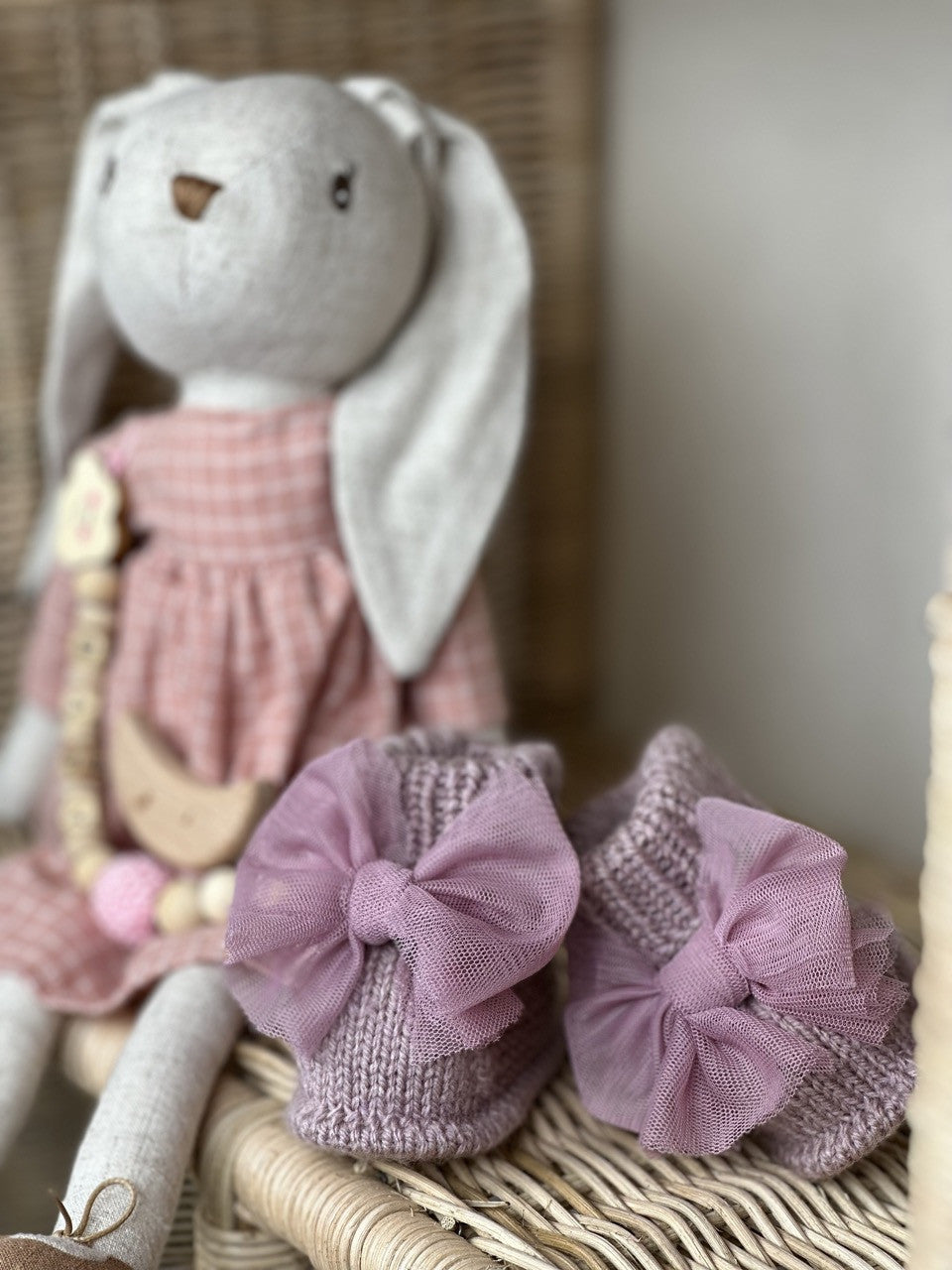 Gül Kurusu Handmade Tül Fiyonk Detaylı Kız Bebek Patik