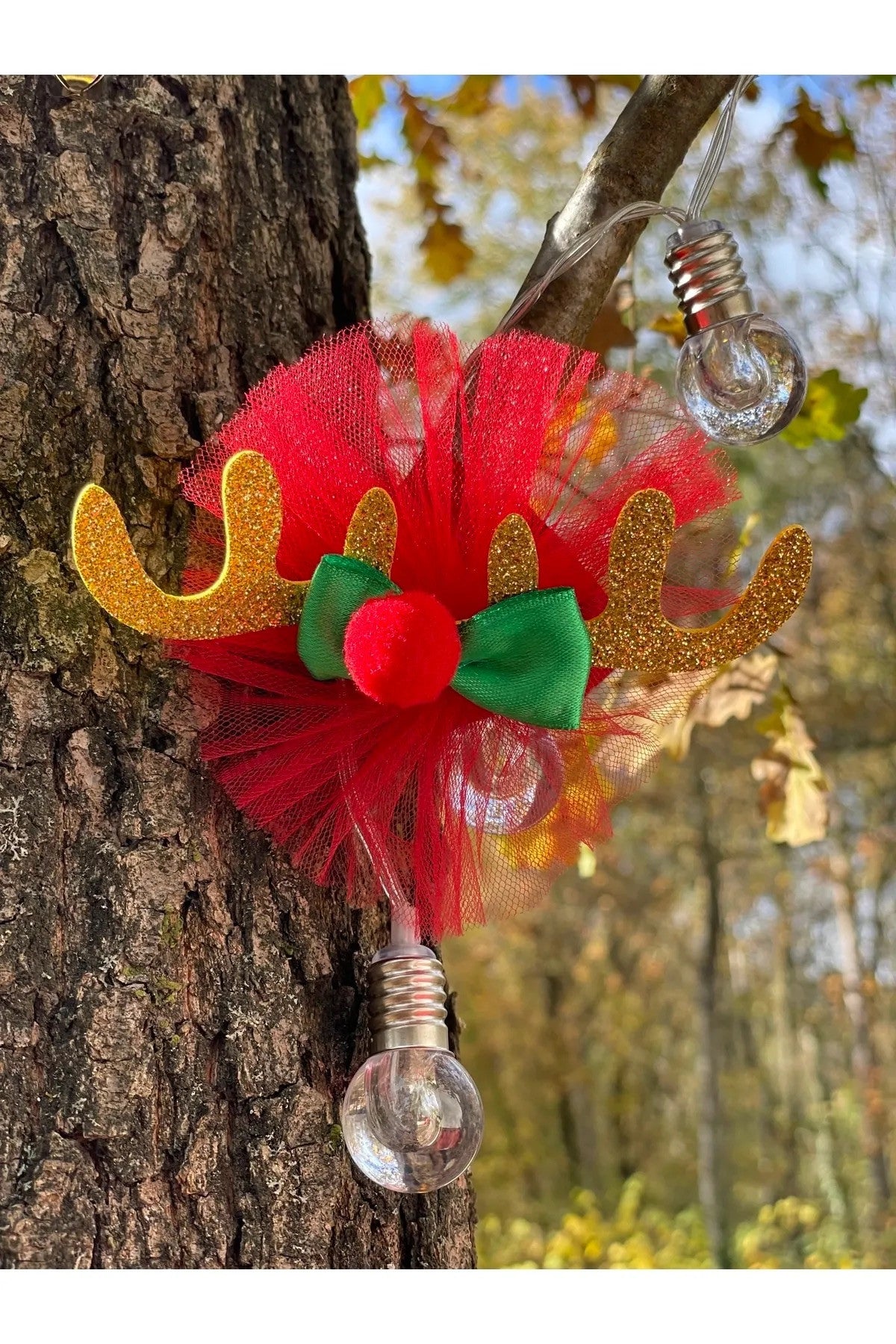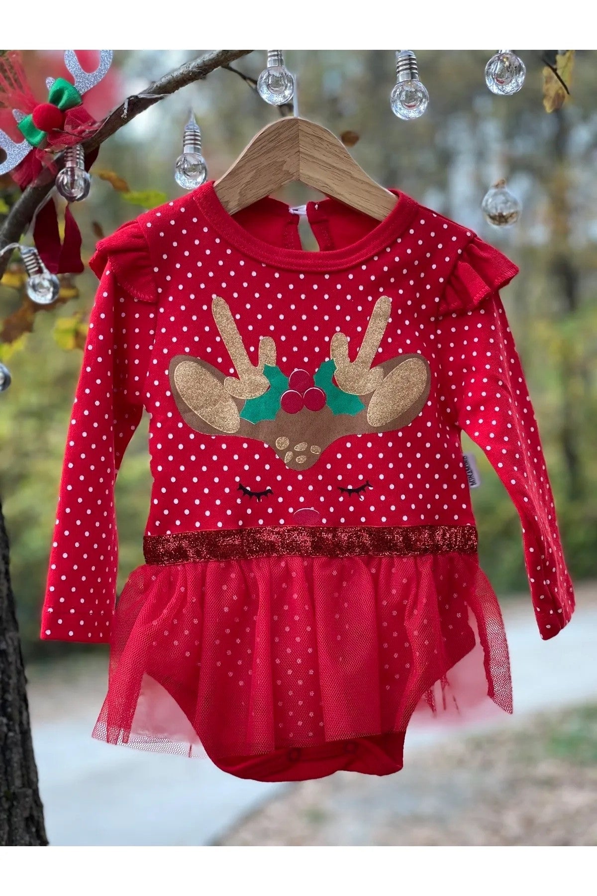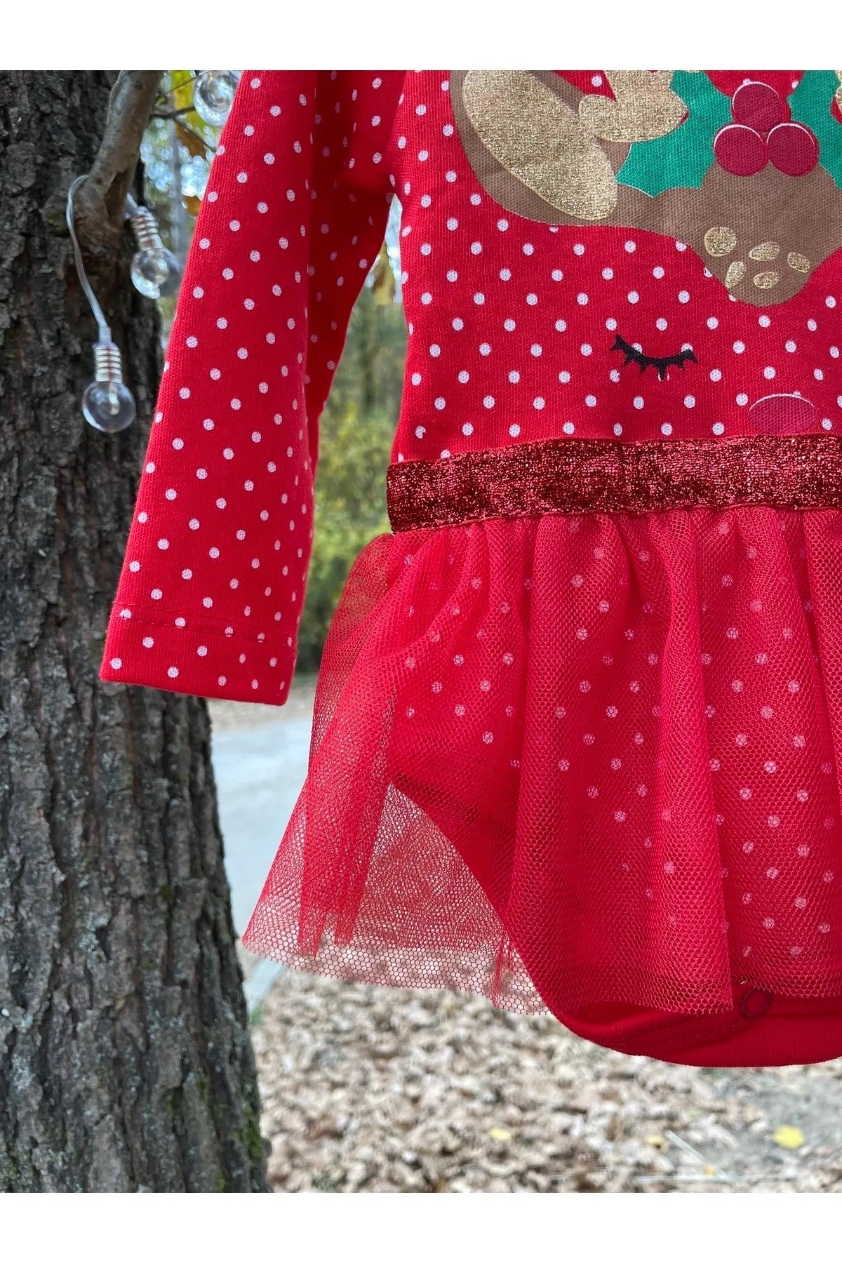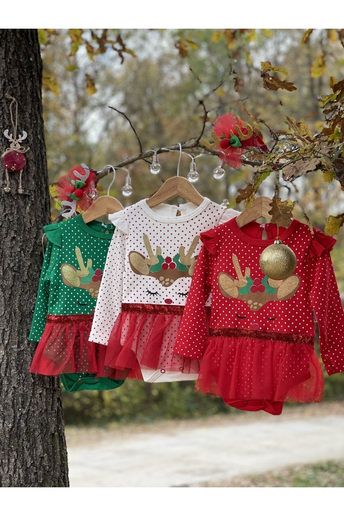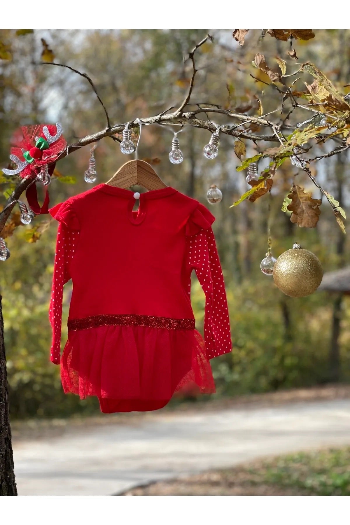 Kırmızı Yılbaşı Temalı Bandanalı Tütülü Kız Bebek Body