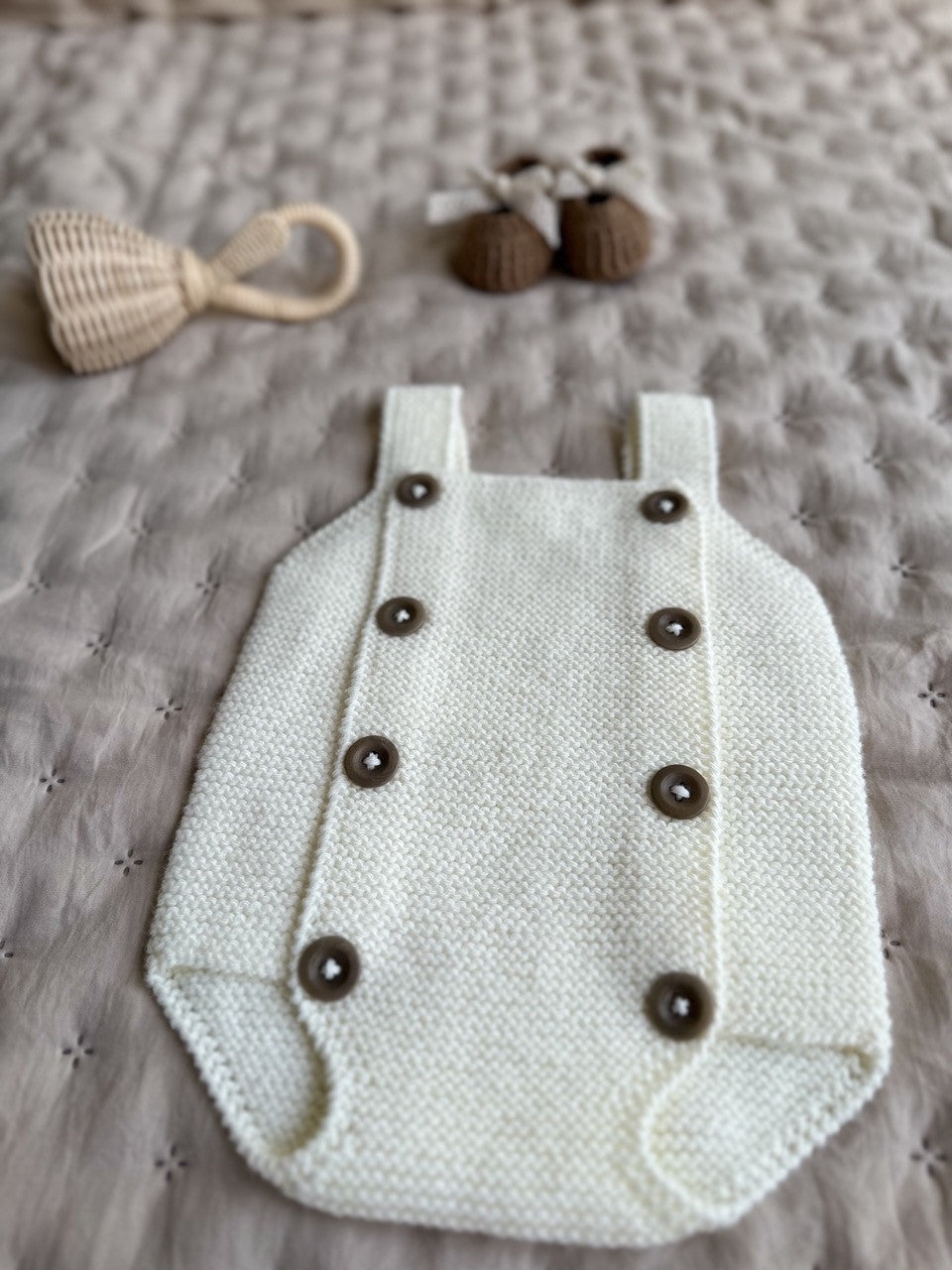 - Tasarım: Yumuşak dokulu, tamamen el yapımı, düğme detaylı kolsuz tulum özenle hazırlanmıştır.