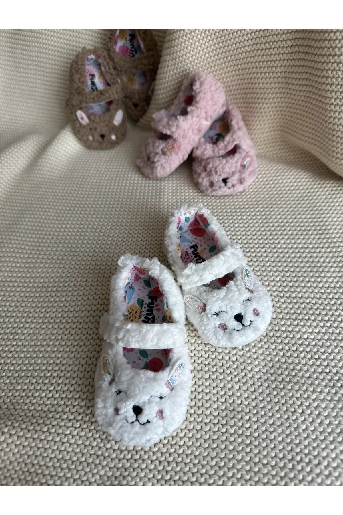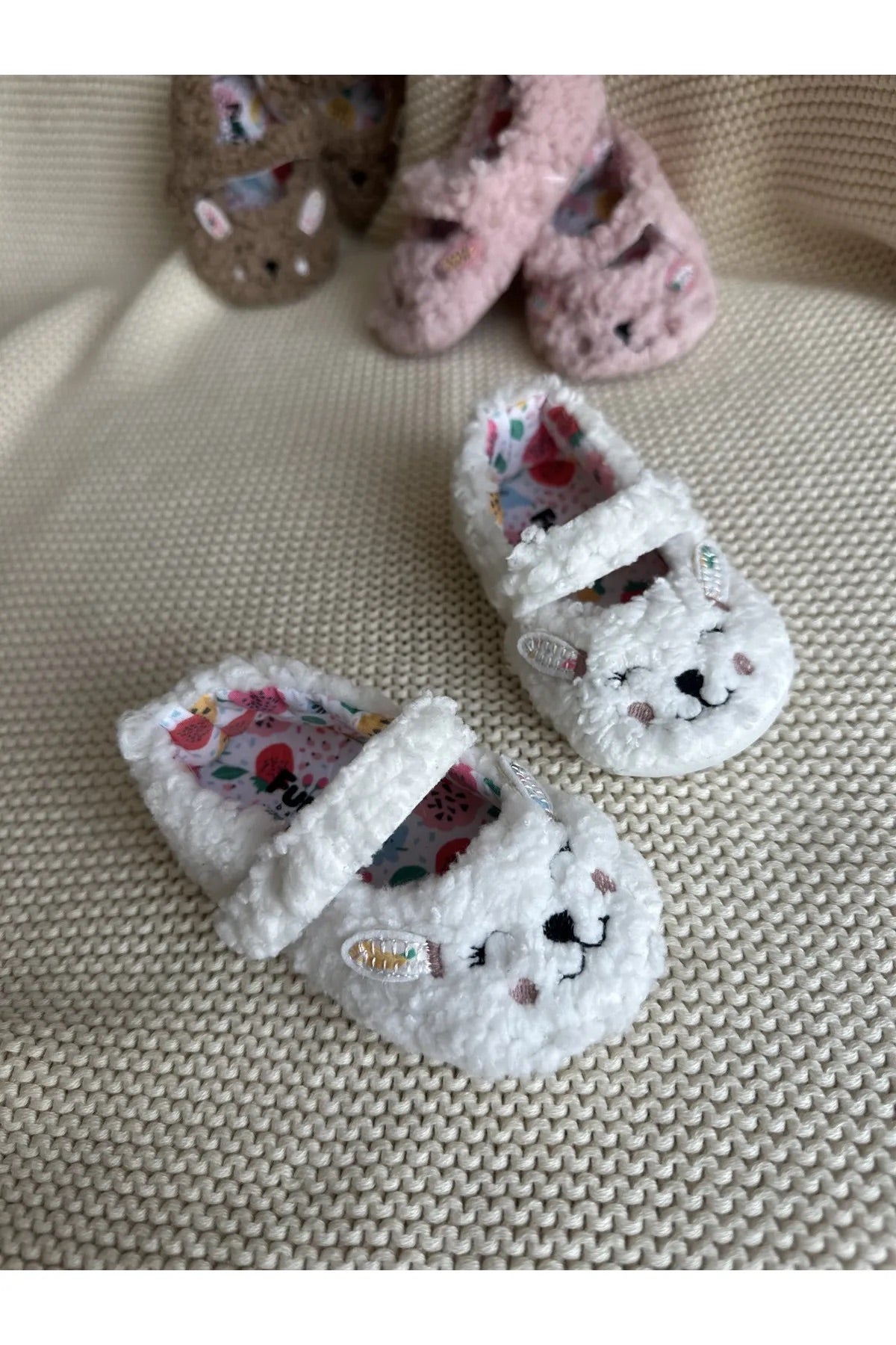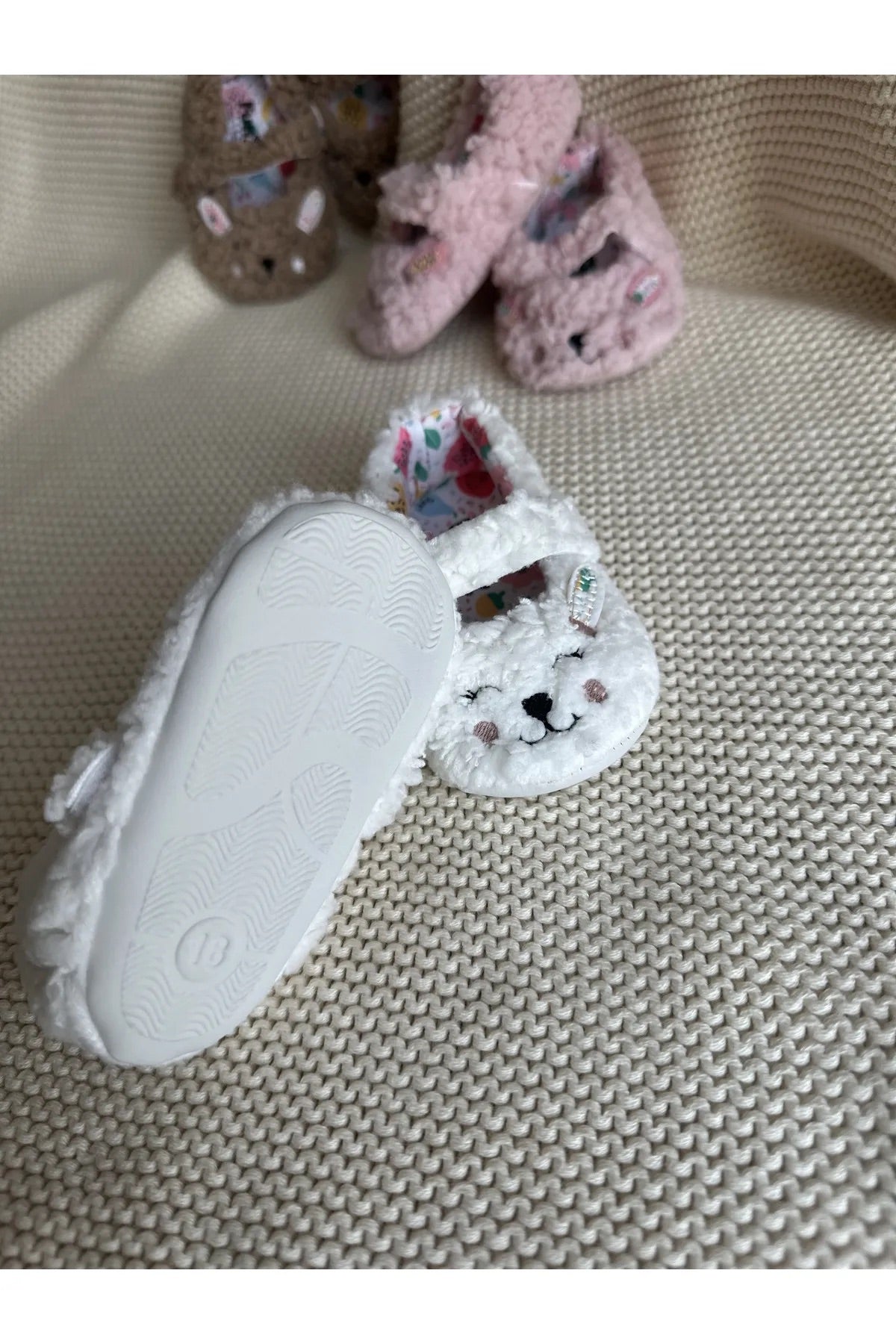 Krem Tavşan Nakış Detaylı Yumuşak Tabanlı Kız Bebek İlk Adım Ayakkabısı