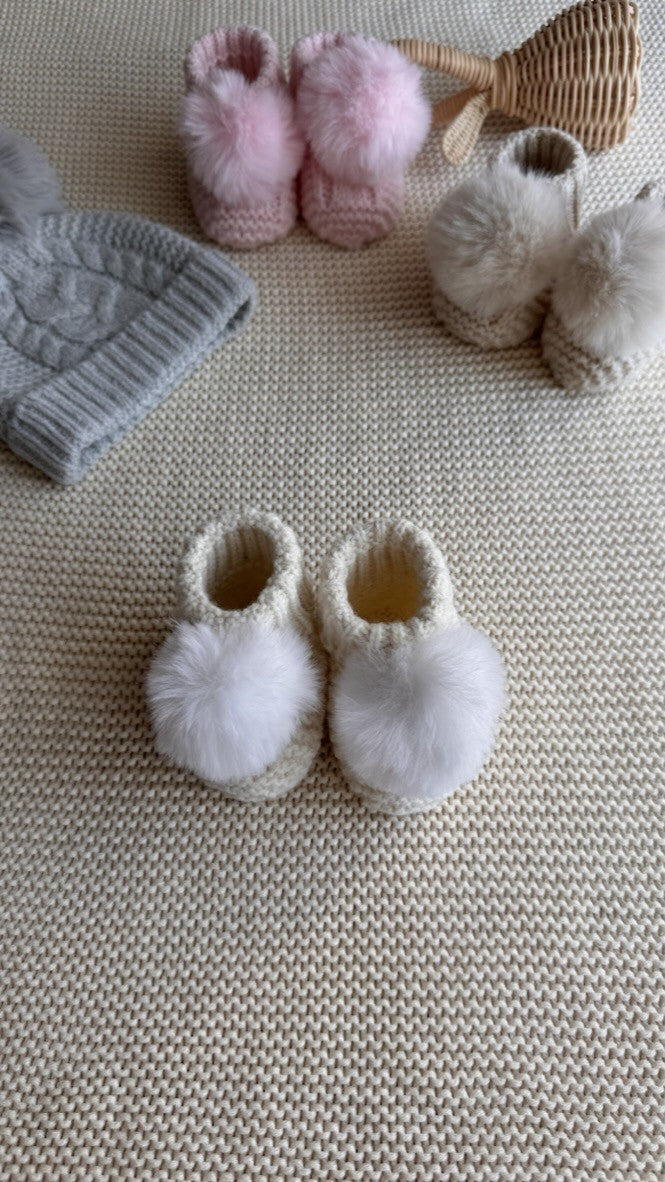 Tüylü Ponponlu Saç Örgü Patikler, bebeklerinizin ayaklarını hem sıcak hem de şık tutmak için tasarlanmıştır.