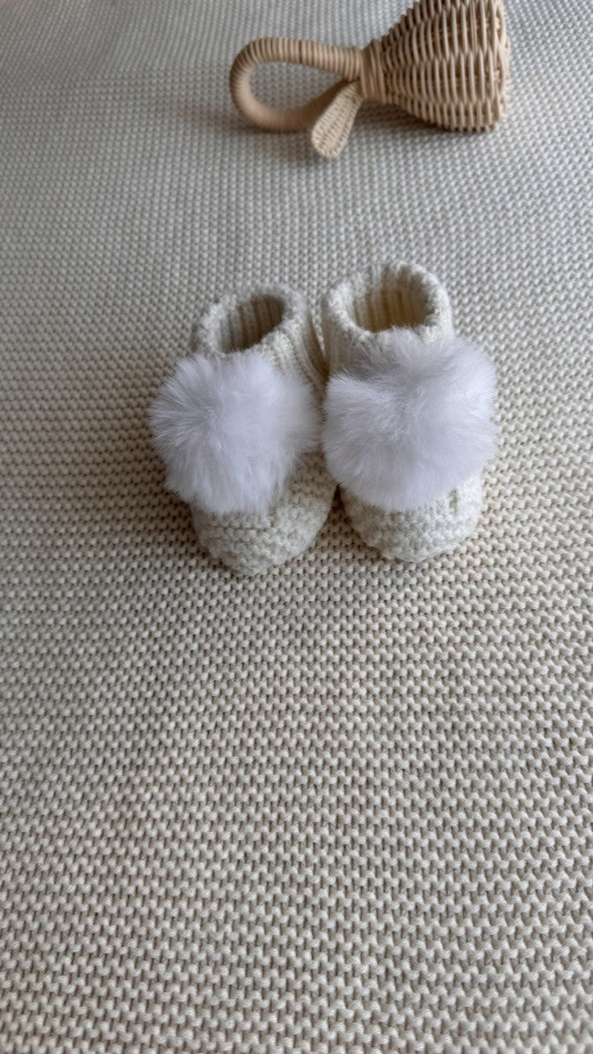 Krem Tüylü Ponponlu Saç Örgü Patik