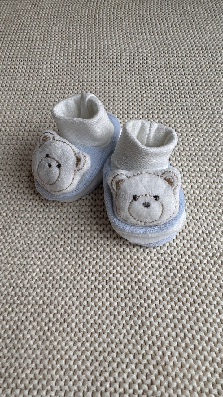 Mavi Peluş 3D Ayıcıklı Kadife Bebek Patiği