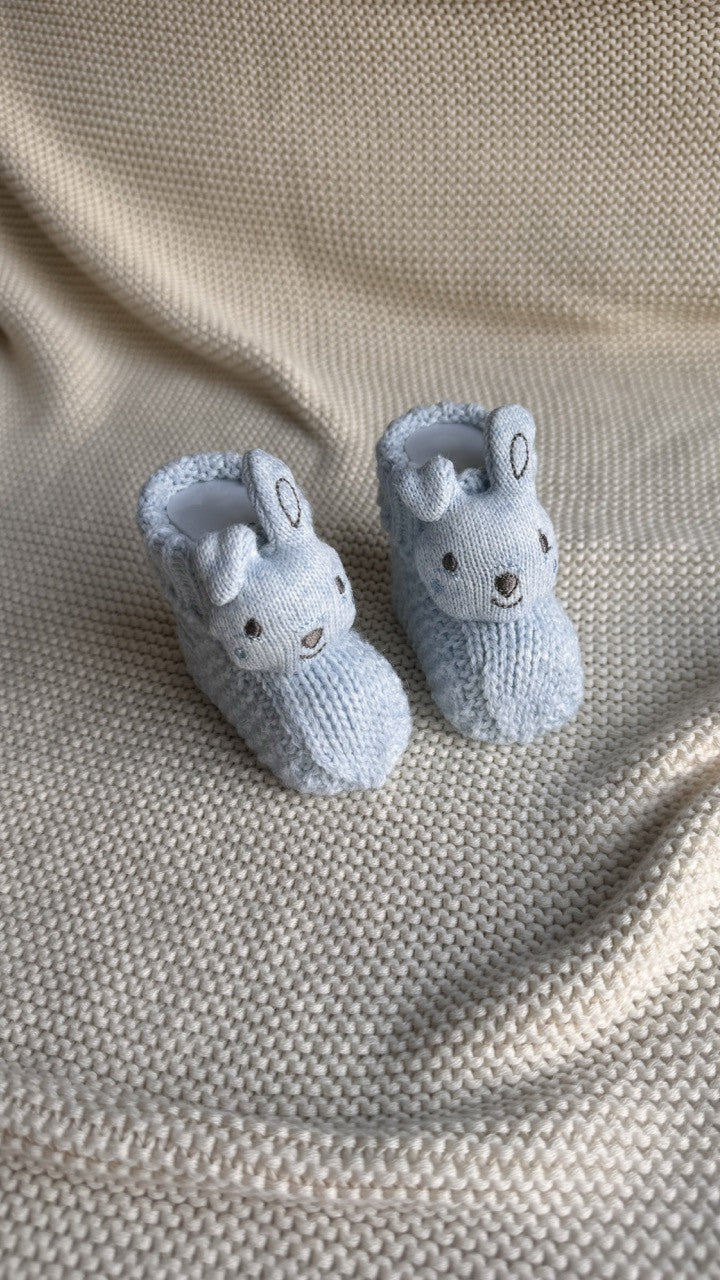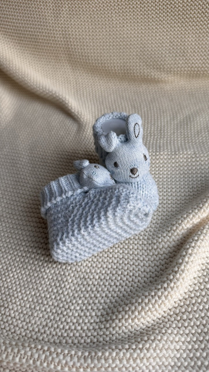- Yumuşak dokulu, peluş tavşan oyuncaklı, çıngıraklı örgüsü patik.
