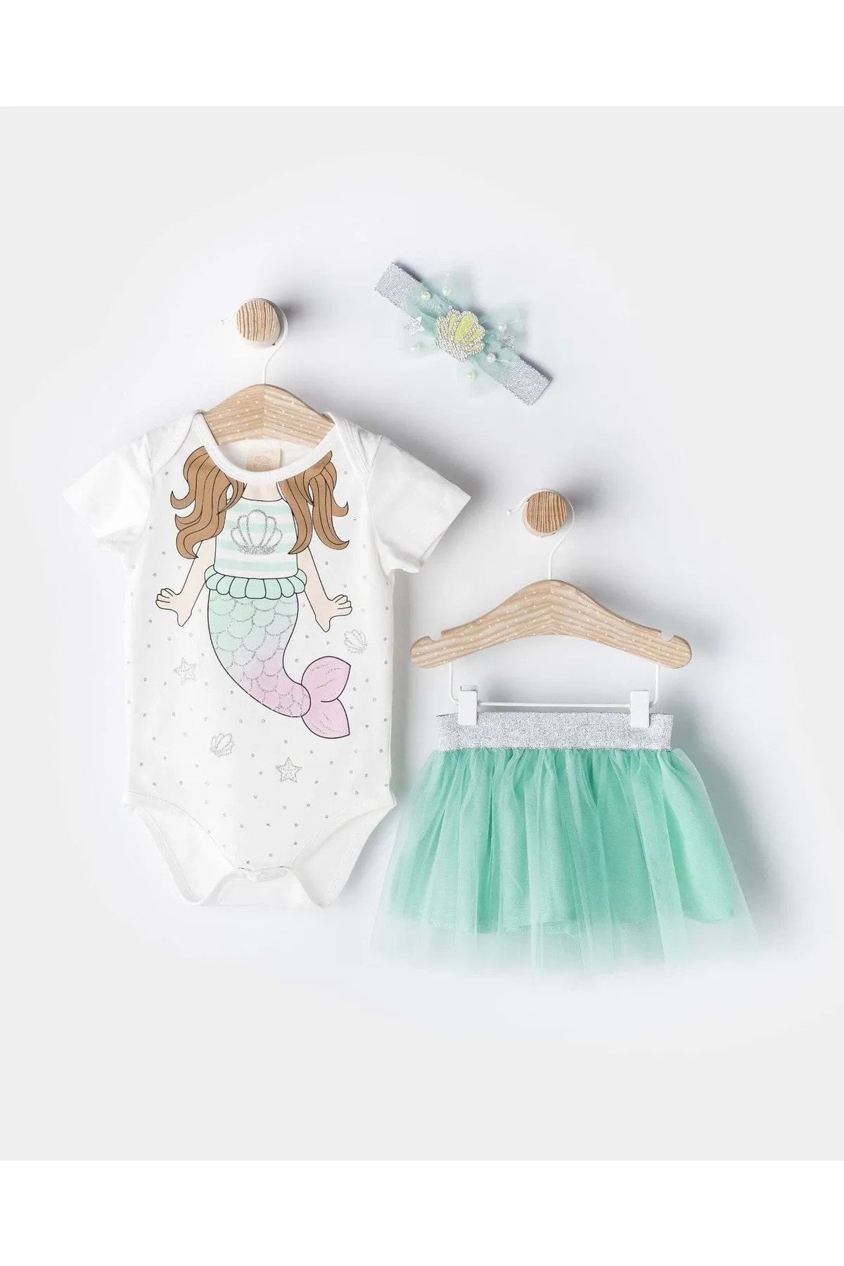 Mint Deniz Kızı Baskılı Tütü Etekli 3'lü Kız Bebek Takımı