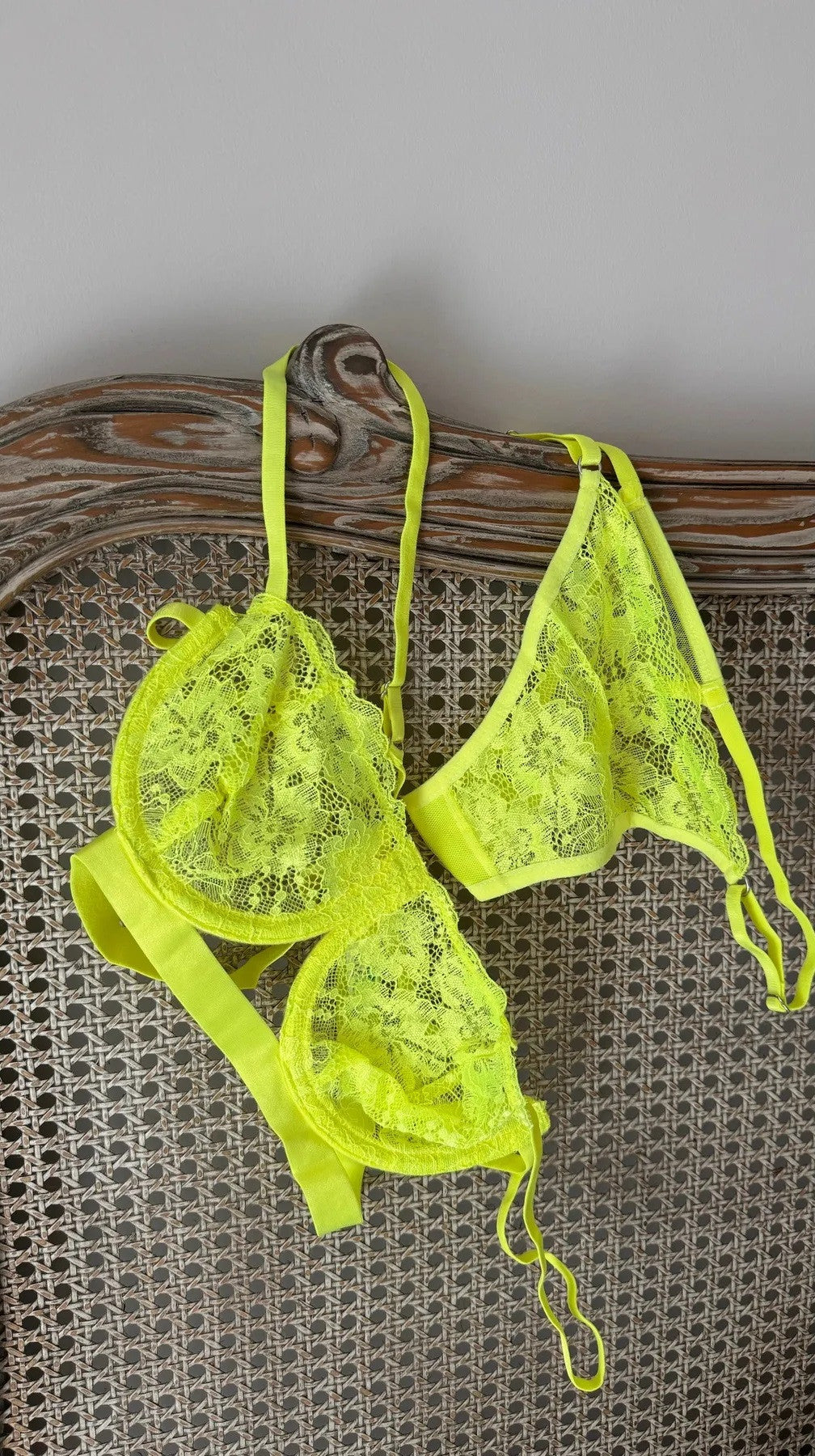 Cesur ve dikkat çekici bir stil arayanlar için neon yeşil dantel sütyen takımı, modern ve enerjik bir dokunuş sunuyor. Bu eşsiz tasarım, hem iç giyimde hem de özgüveninizde etkileyici bir değişiklik yapacak.