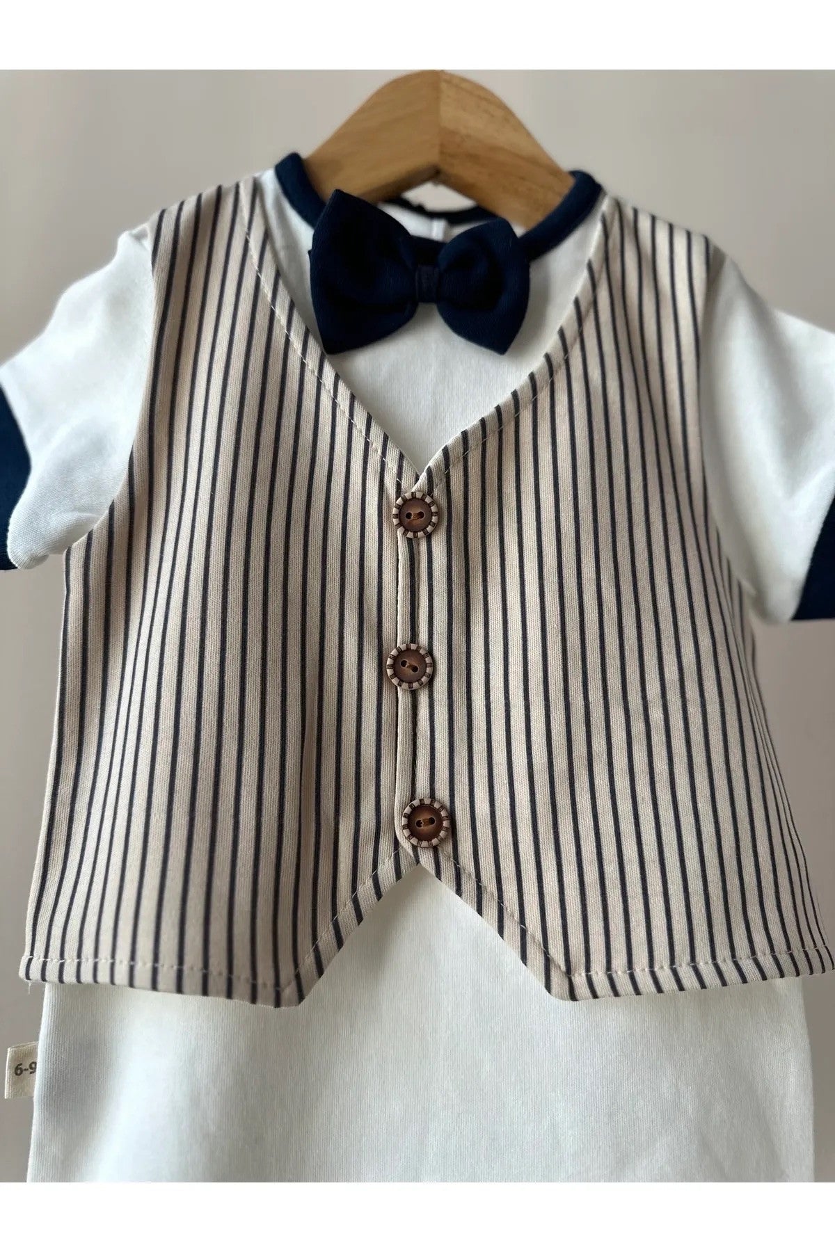 Şık papyon ve yelek detayı, tuluma zarif bir dokunuş katarak bebeğinizin her ortamda göz alıcı olmasını sağlar.