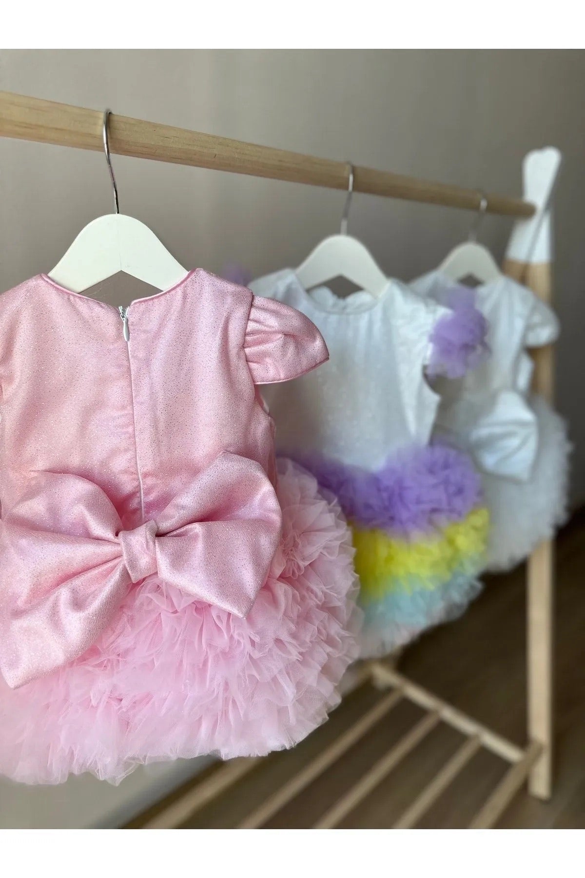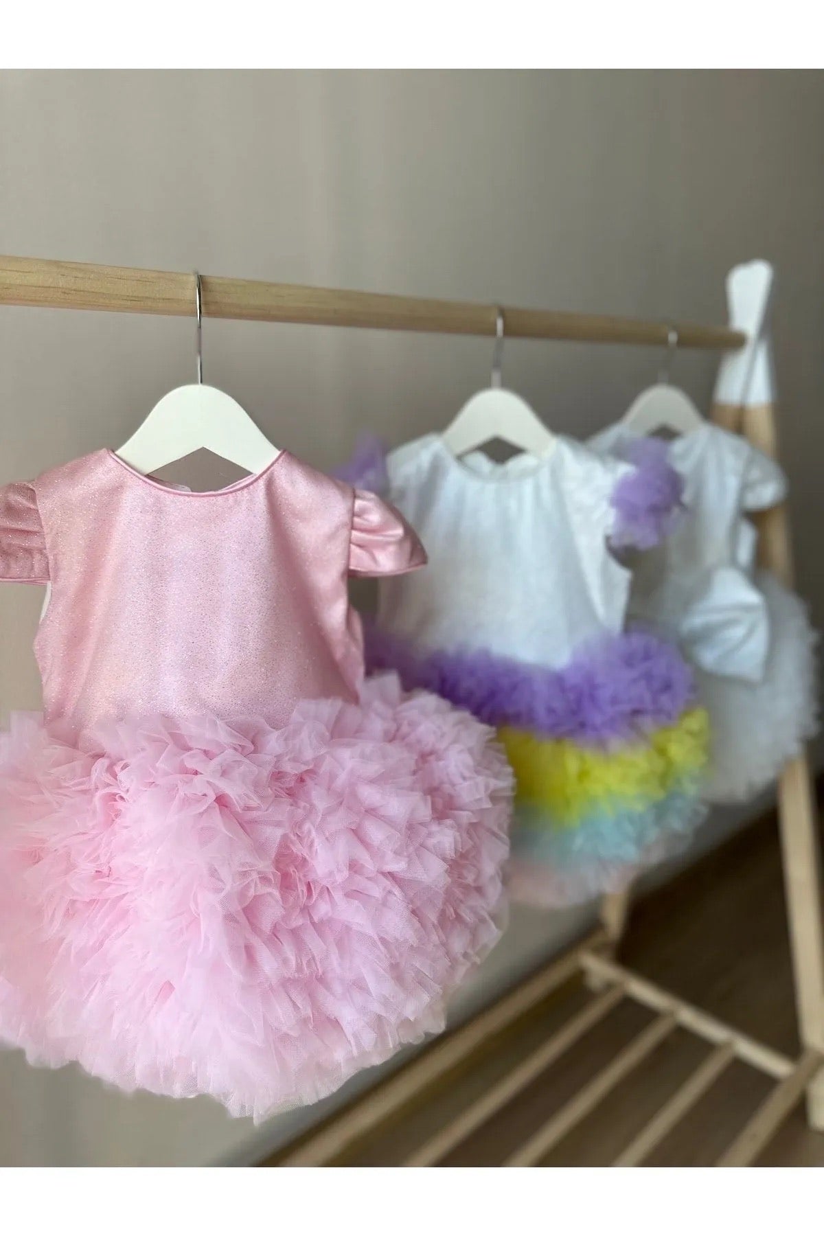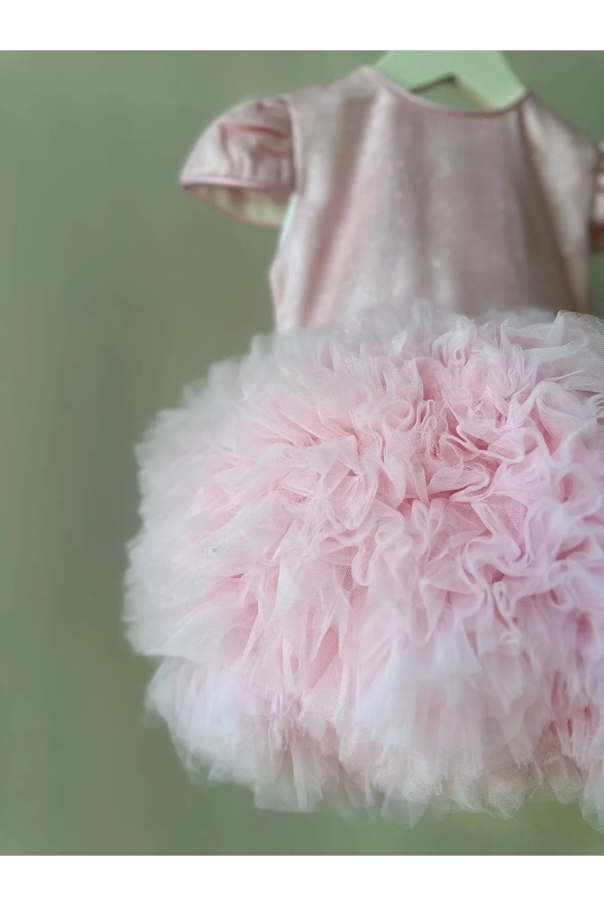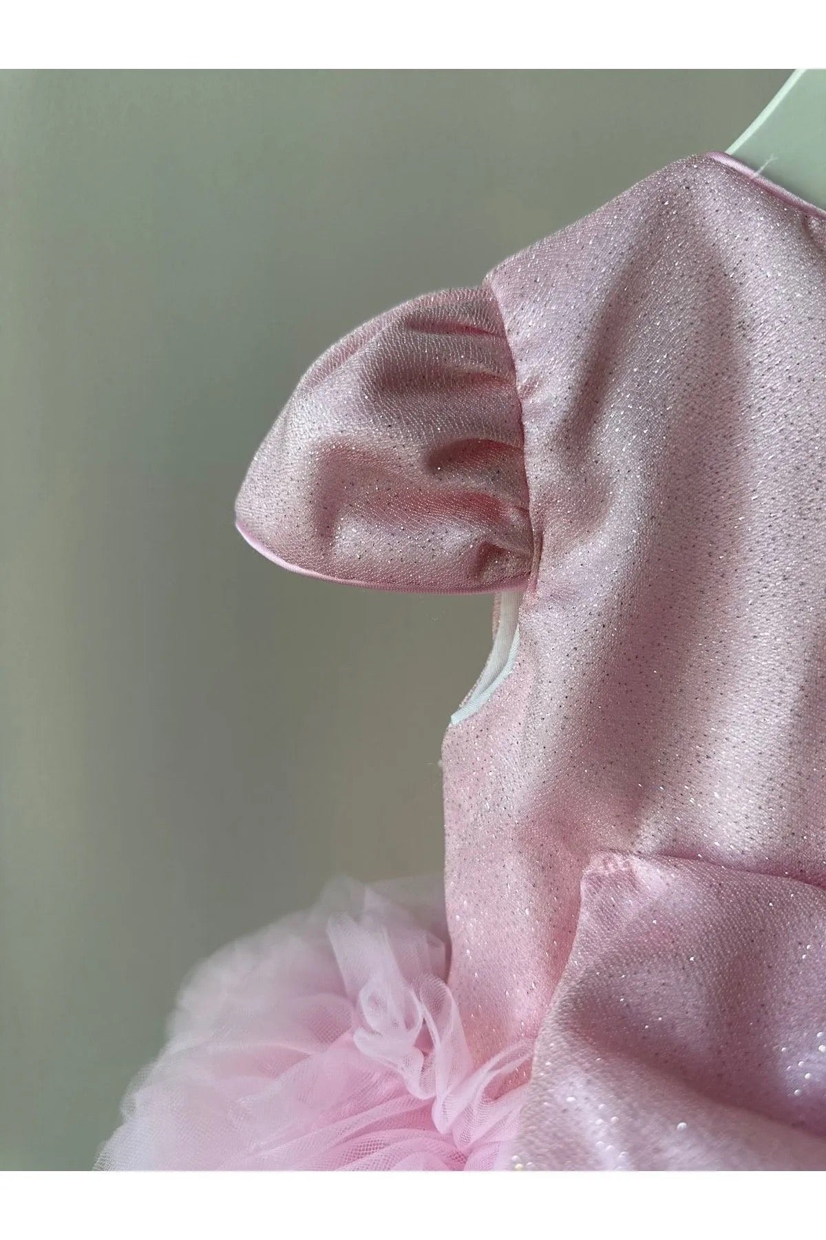 Pembe Kabarık Tütü Etekli Simli Kız Bebek Elbise