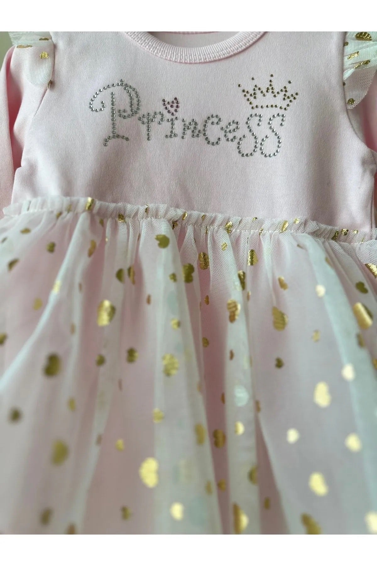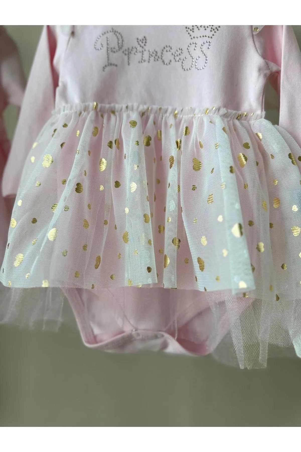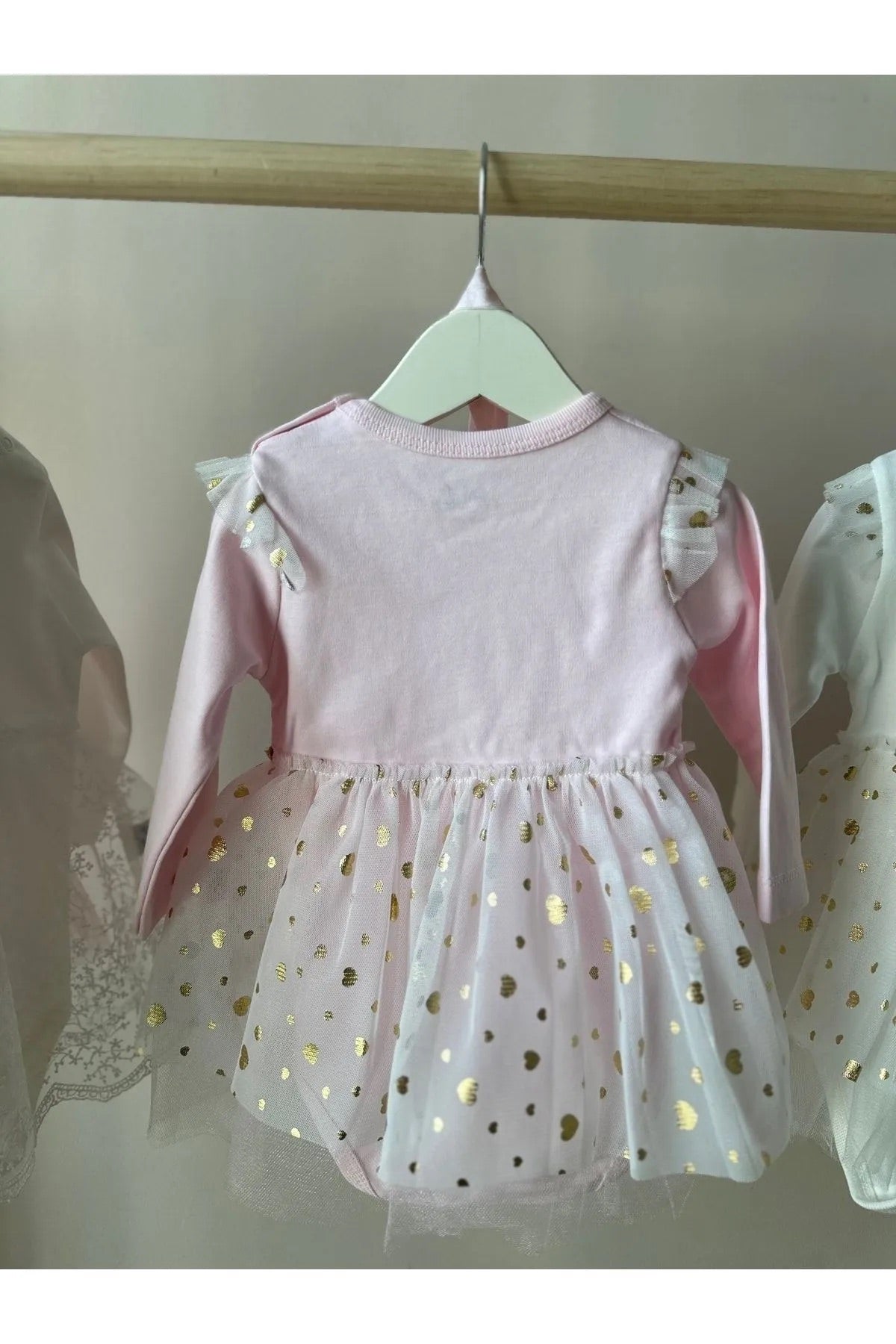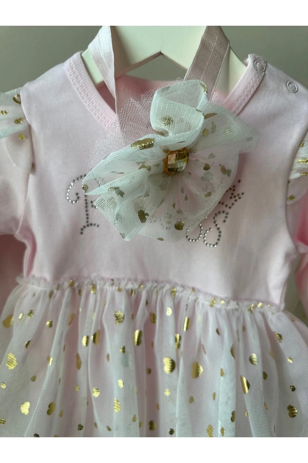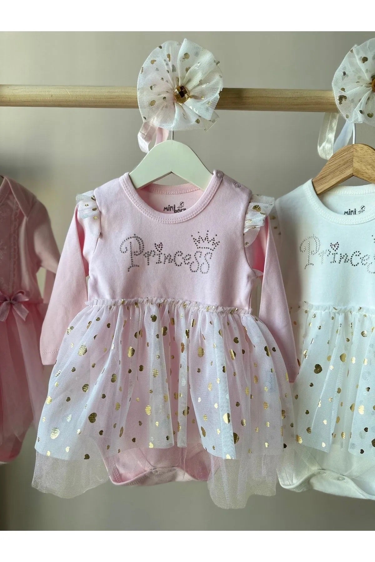 Puantiye baskılı tütü etekli ve saç bantlı çıtçıtlı body elbise takım.