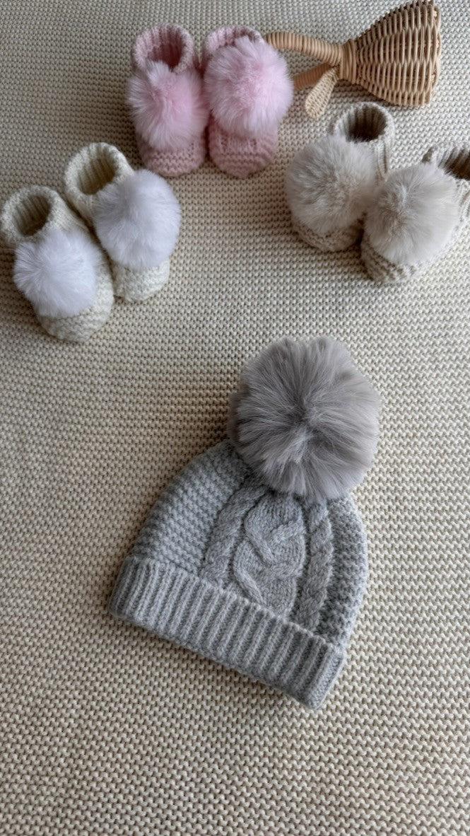 Miniklerin başını soğuktan korurken şıklık katacak Ponponlu Saç Örgü Triko Bebek Beresi, yumuşacık triko dokusu ve zarif saç örgü deseniyle öne çıkıyor.