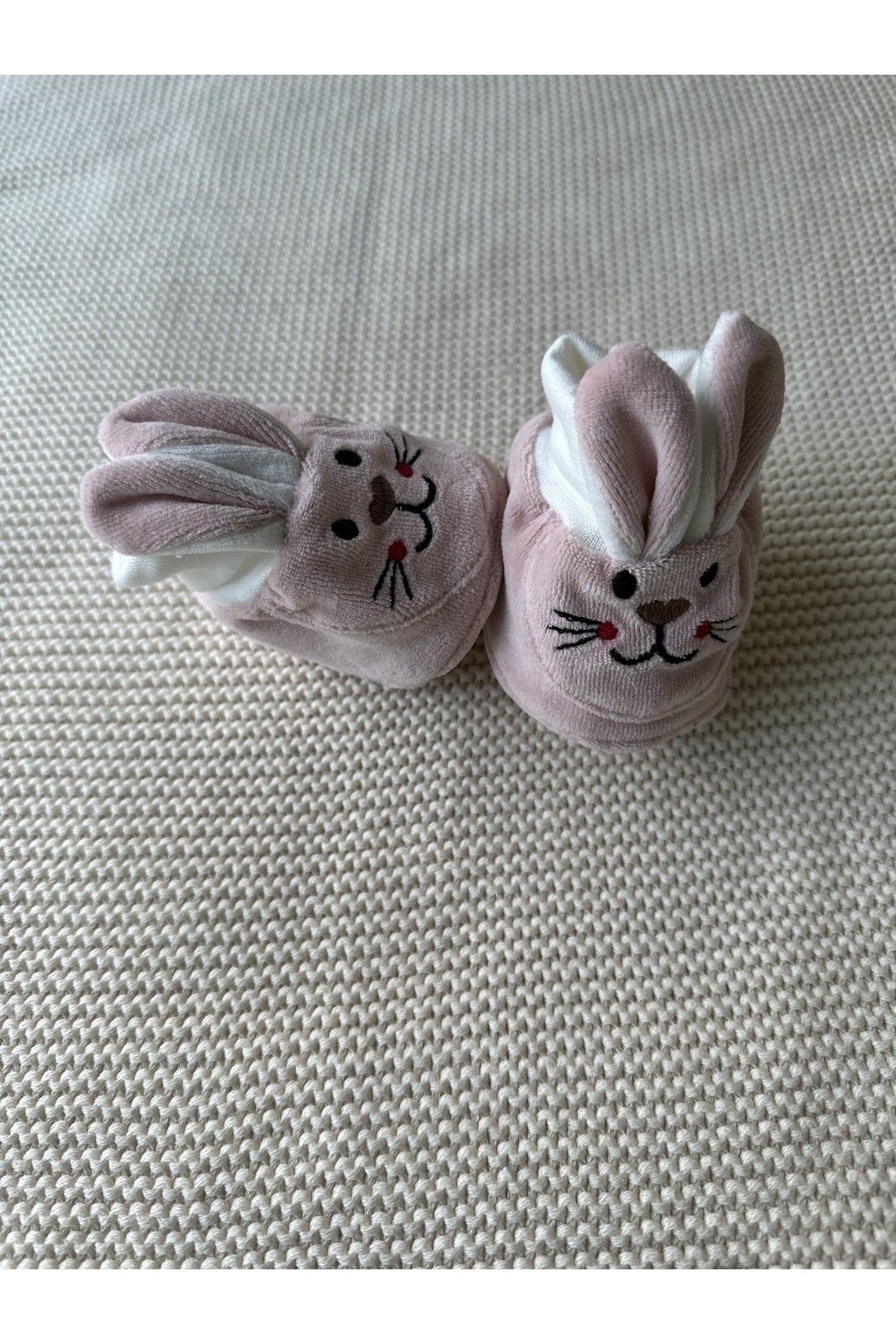 Somon Tavşanlı Kaymaz Tabanlı Kadife Bebek Patiği
