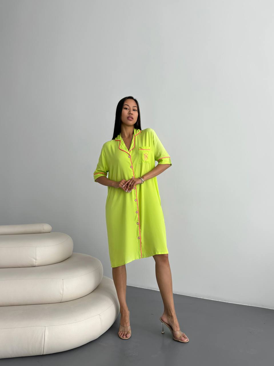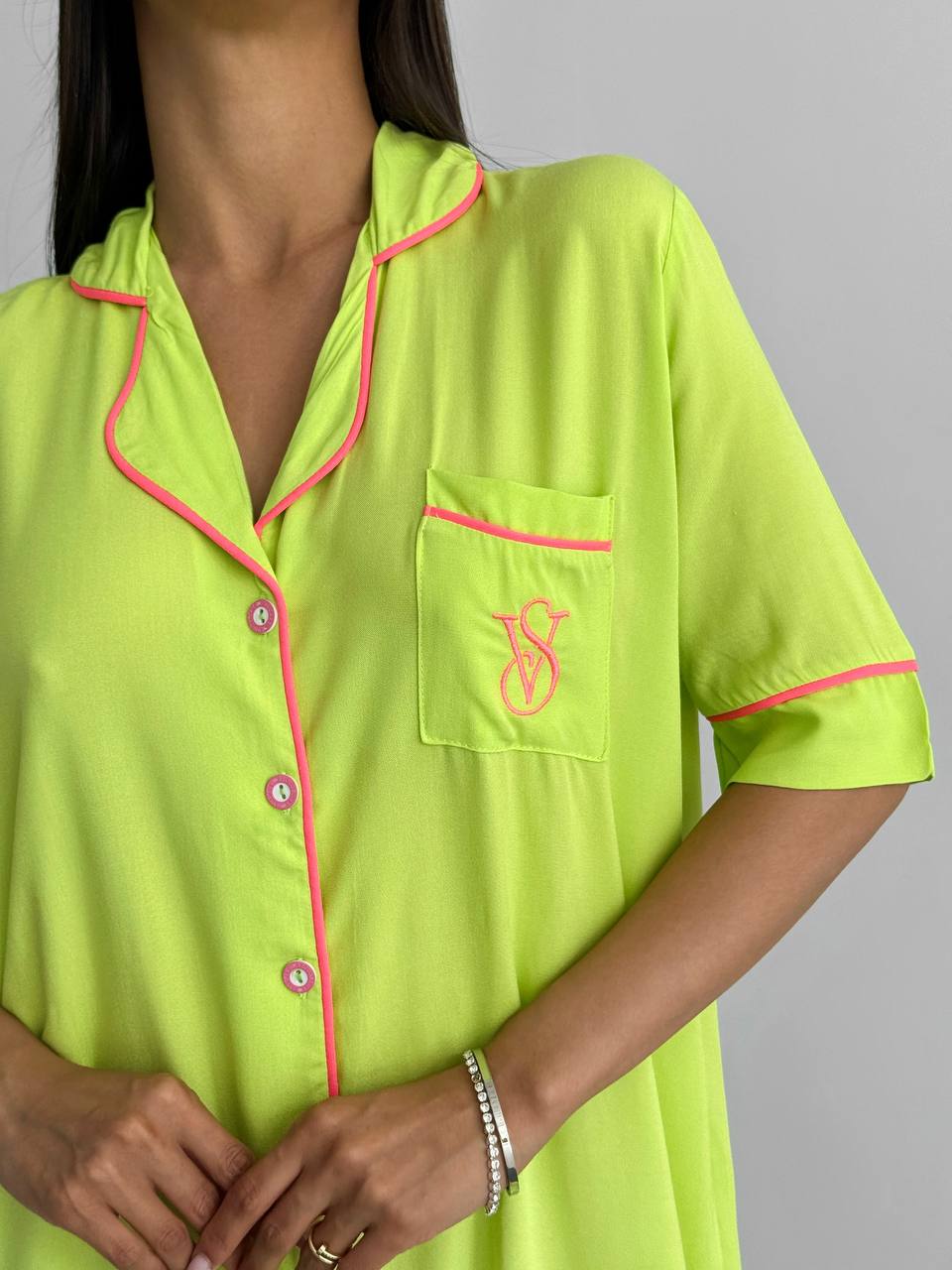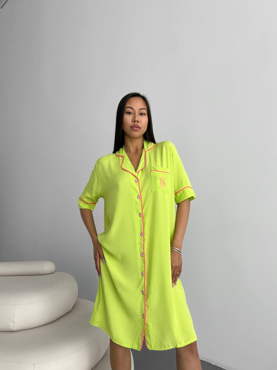 Yeşil Gömlek Yaka Full Düğme Kapamalı VS Kadın Gecelik