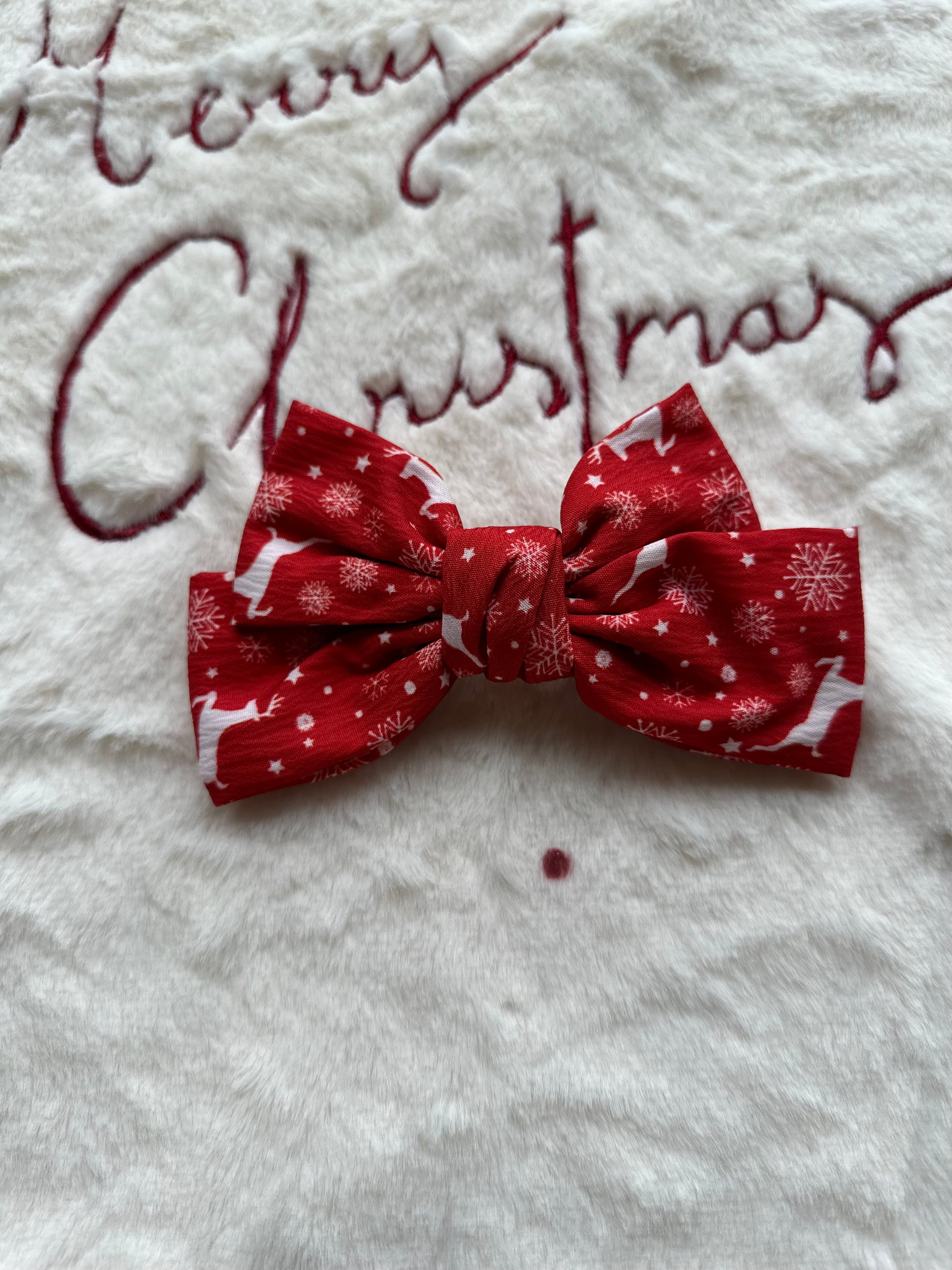 Yılbaşı Konseptli Kırmızı Geyik Desenli Fiyonklu Klipsli Saç Tokası