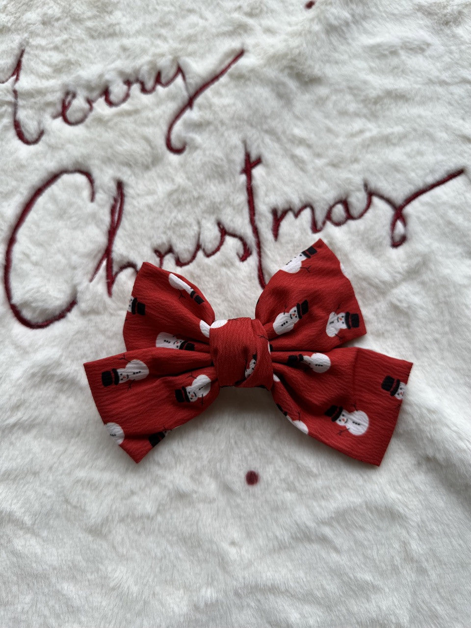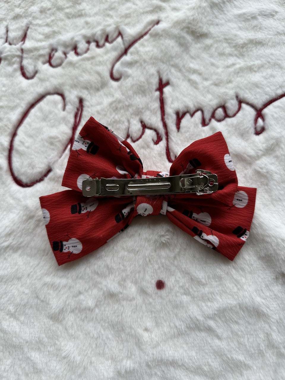 Yılbaşı Konseptli Kırmızı Kardan Adam Desenli Fiyonklu Klipsli Saç Tokası