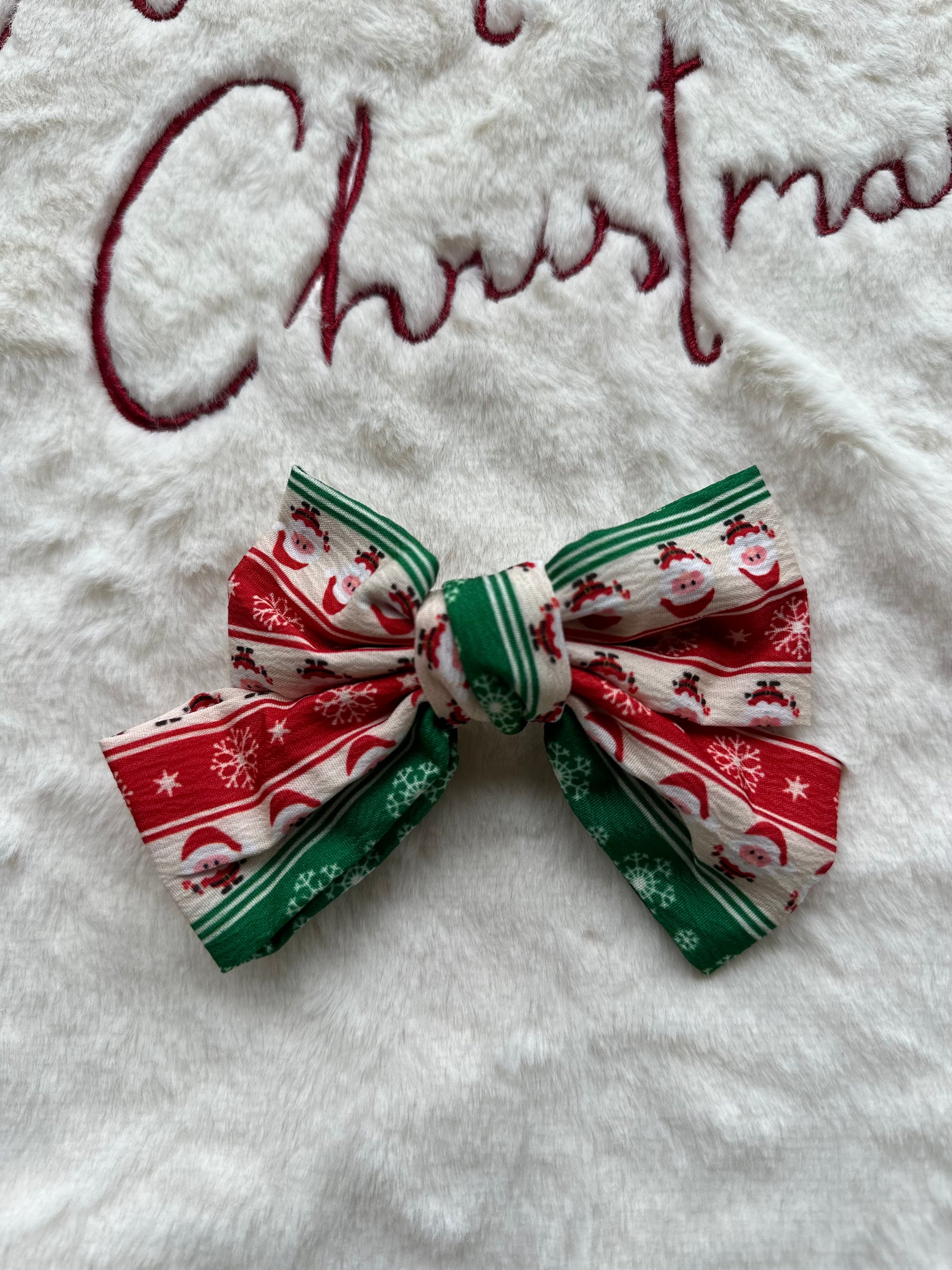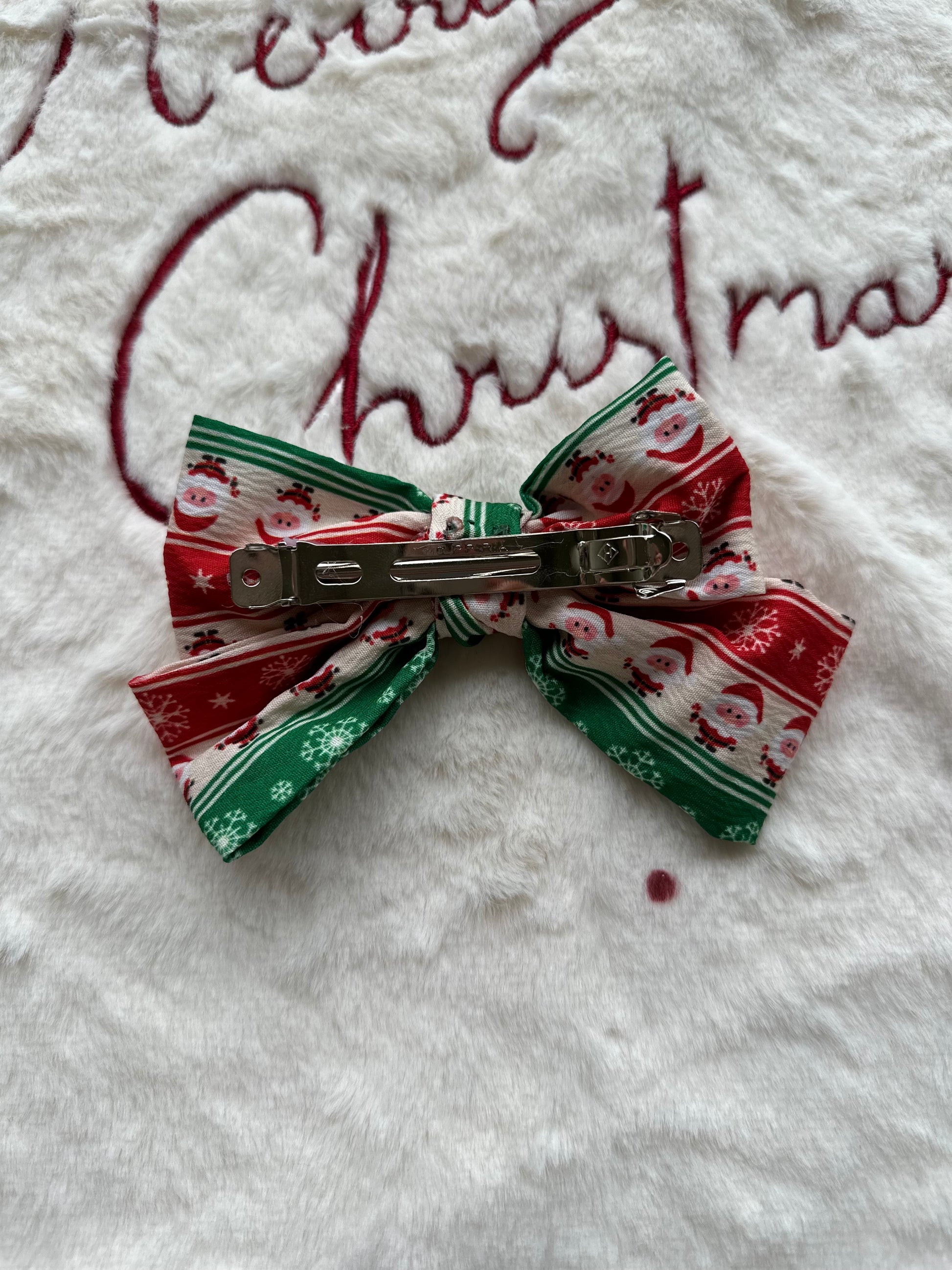Yılbaşı Konseptli Kırmızı Yeşil Desenli Fiyonklu Klipsli Saç Tokası