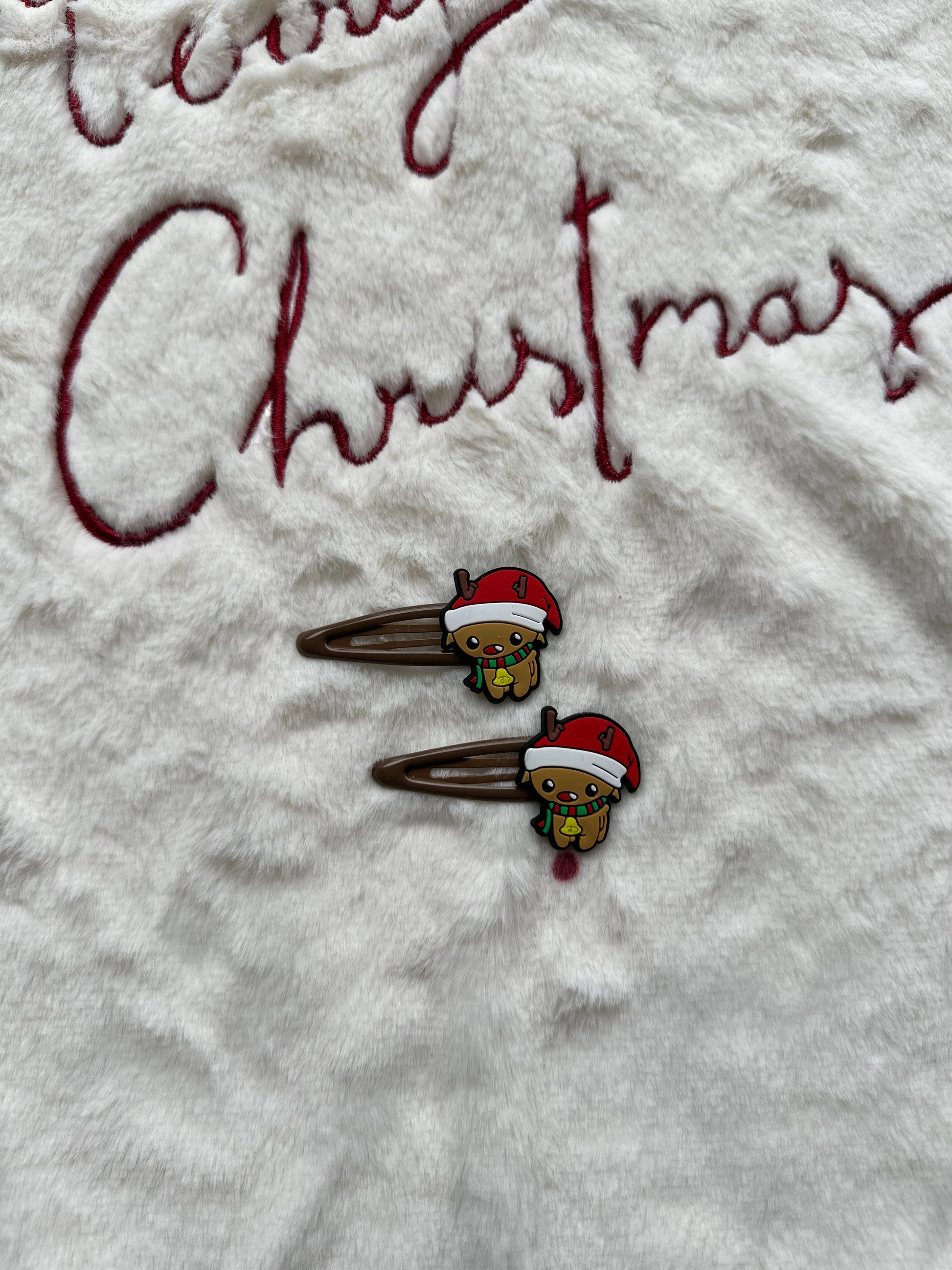 Yılbaşı Konseptli Ren Geyiği Figürlü 2'li Çıtçıt Toka