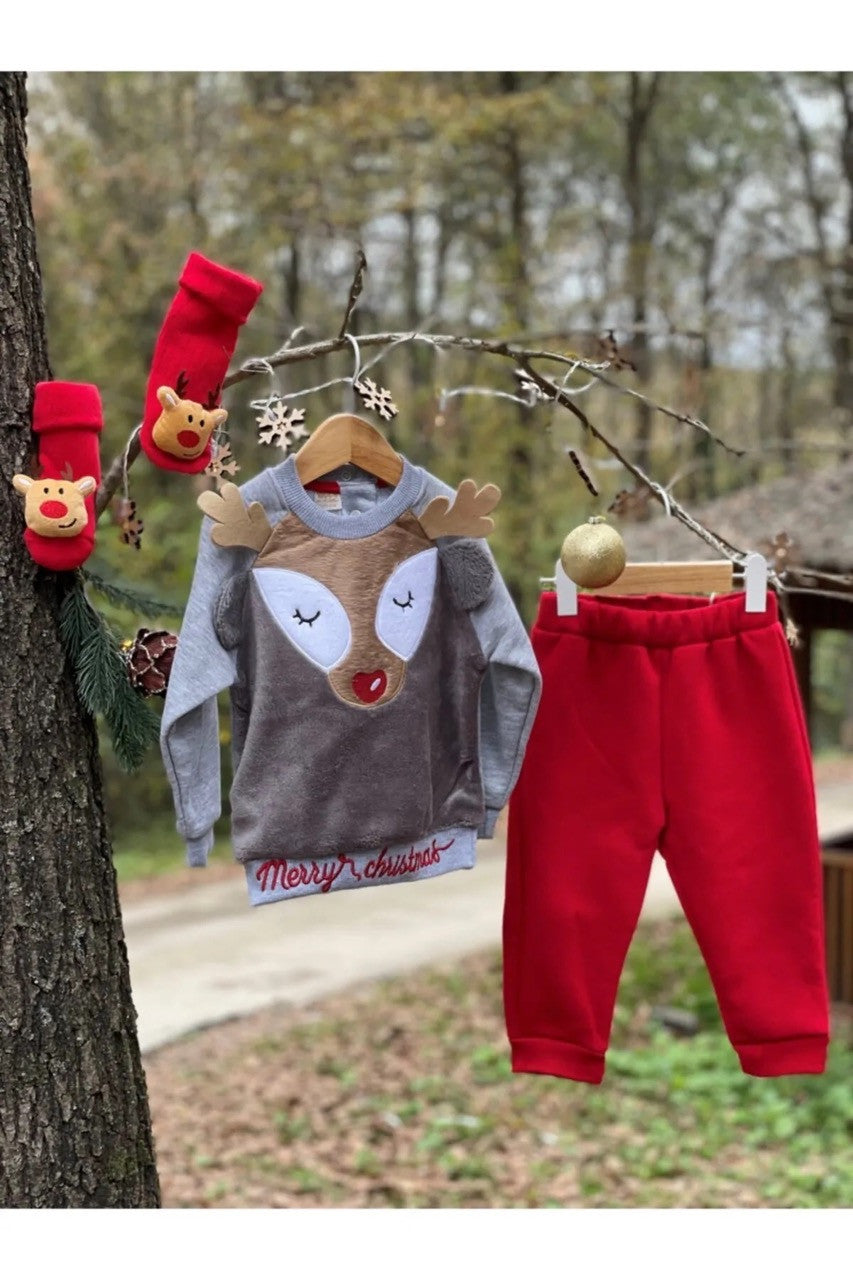 Bebeğinizin soğuk kış günlerinde hem sıcacık hem de şirin görünmesini sağlayacak bu yılbaşı temalı 2’li eşofman takımı, yumuşacık pelüş dokusuyla öne çıkıyor. Sevimli ren geyiği nakışı, yılbaşı ruhunu yansıtırken bebeğinizin konforundan ödün vermiyor. Rahat kesimi ve esnek yapısıyla hareket özgürlüğü sunan bu takım, hem özel günlerde hem de günlük kullanımda ideal bir tercih! 🌟