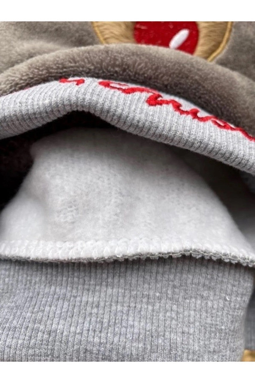 Sweatshirt manşetleri ve etek ucu ribanalı olup, etek ucu Merry Christmas nakış işlemelidir. İçi tüylüdür, sıcak tutar. Enseden çıtçıt kapamalıdır.