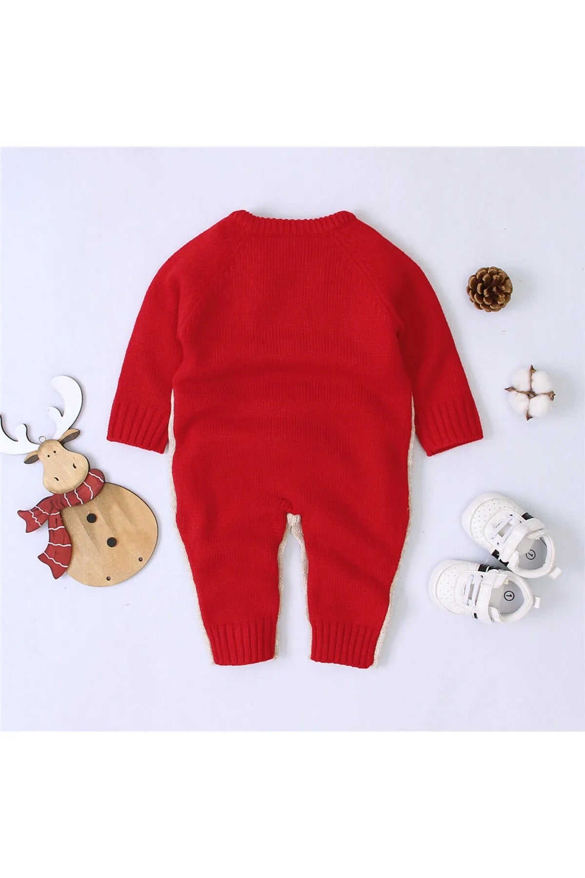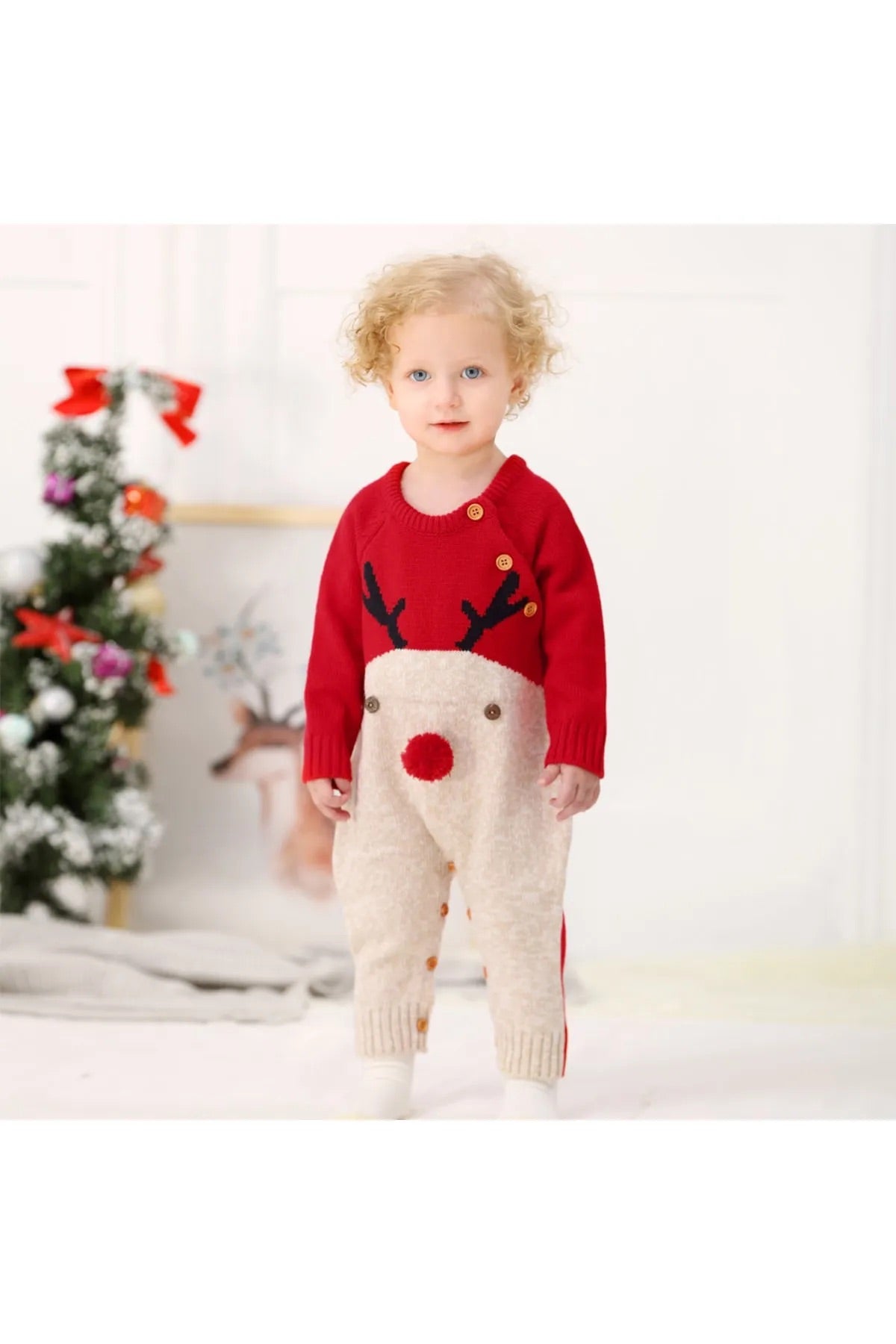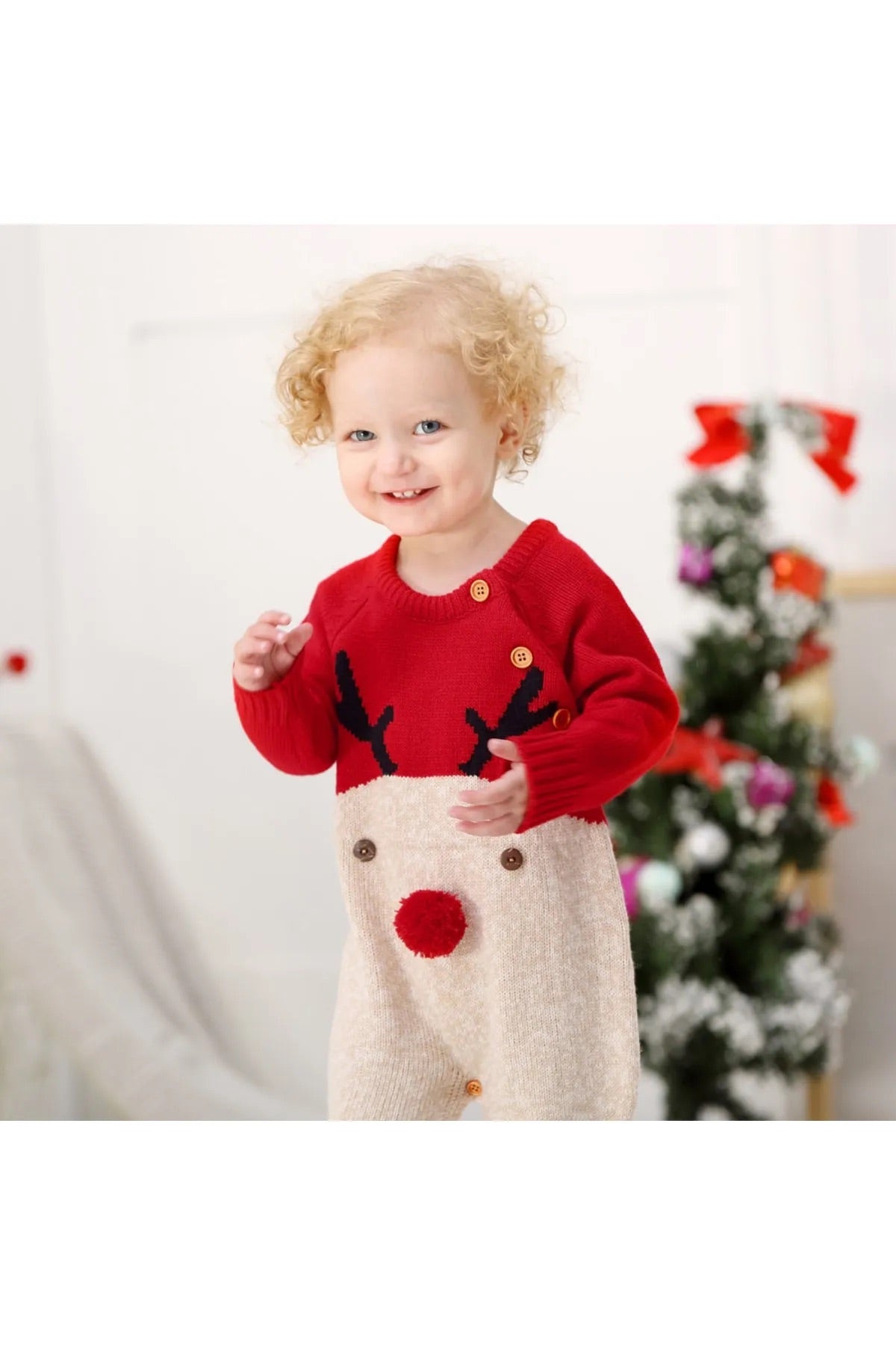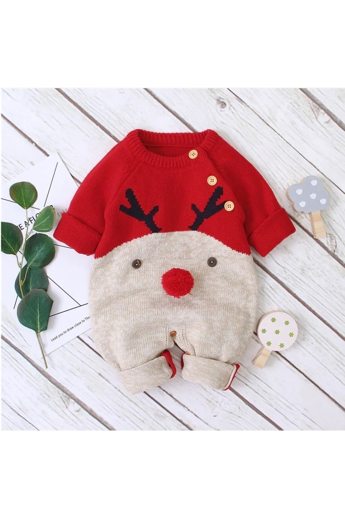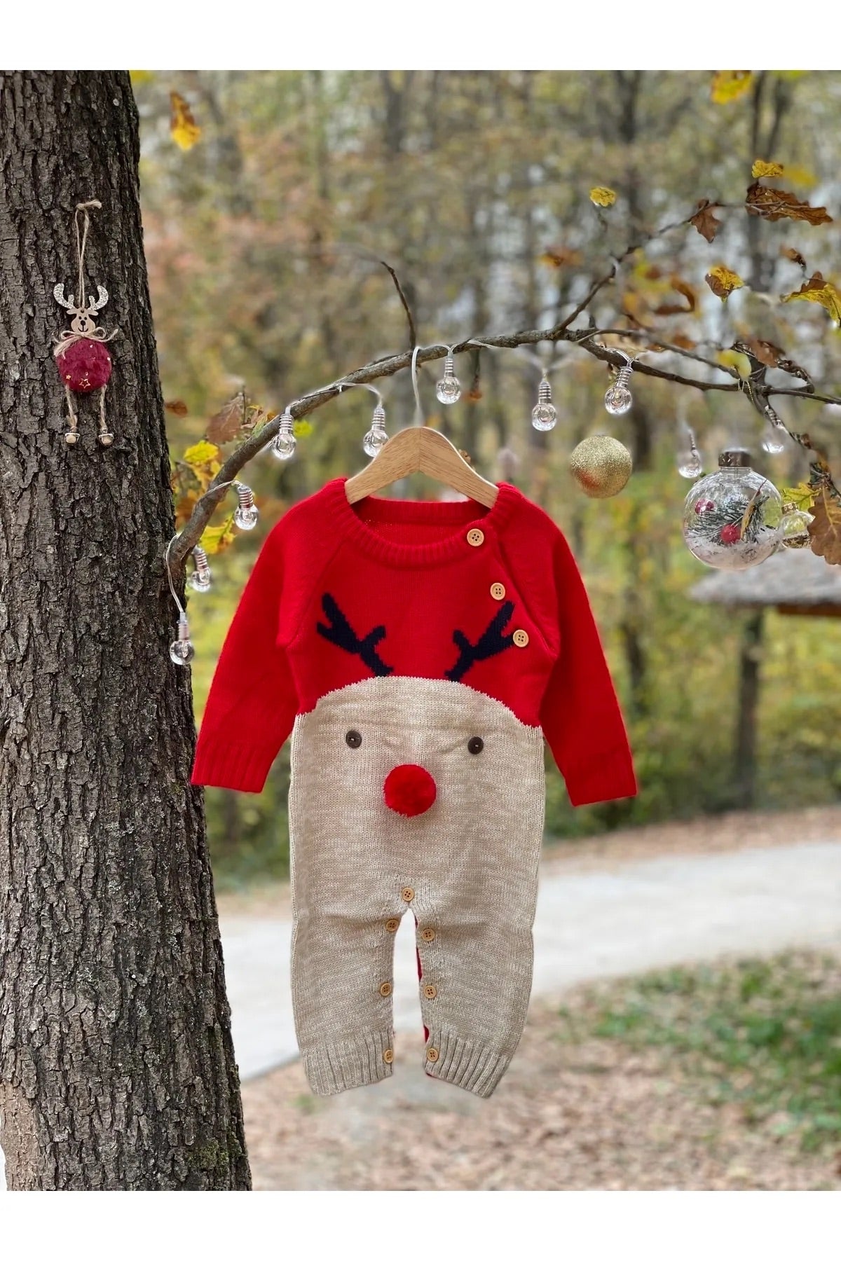 Ren Geyiği Desenli Bebek Triko Tulum.