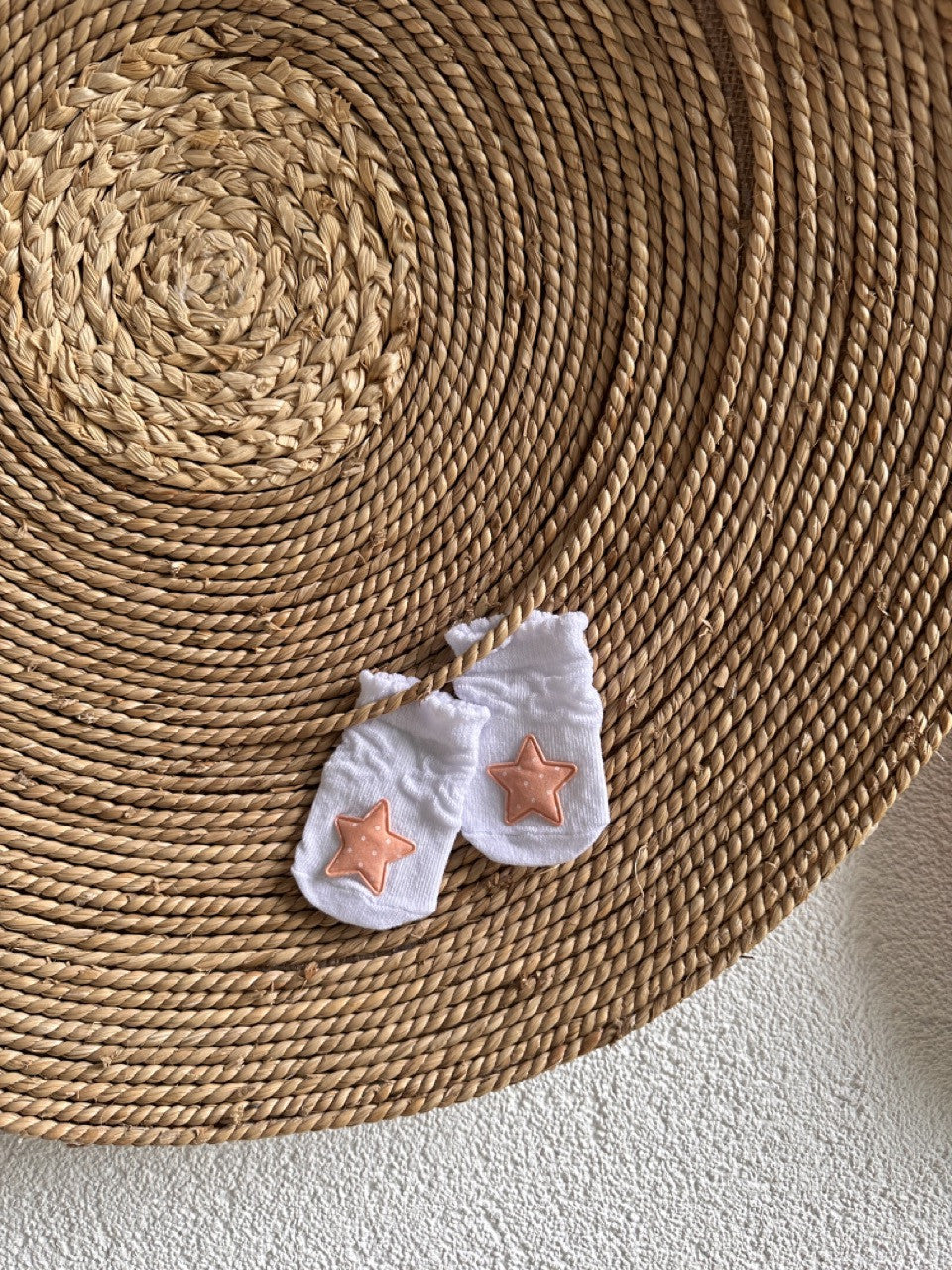 Turuncu Yıldız Objeli Eğlenceli Beyaz Kız Bebek Çorabı